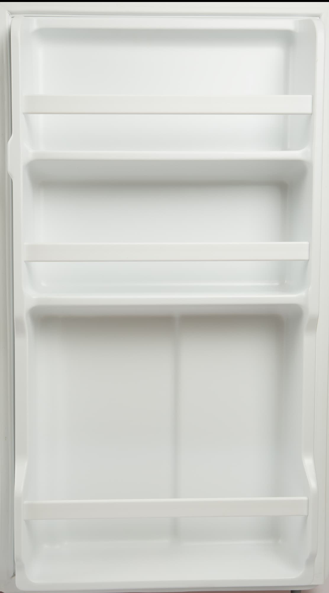 На дверце имеется три фиксированные полки с держателями для бутылок.