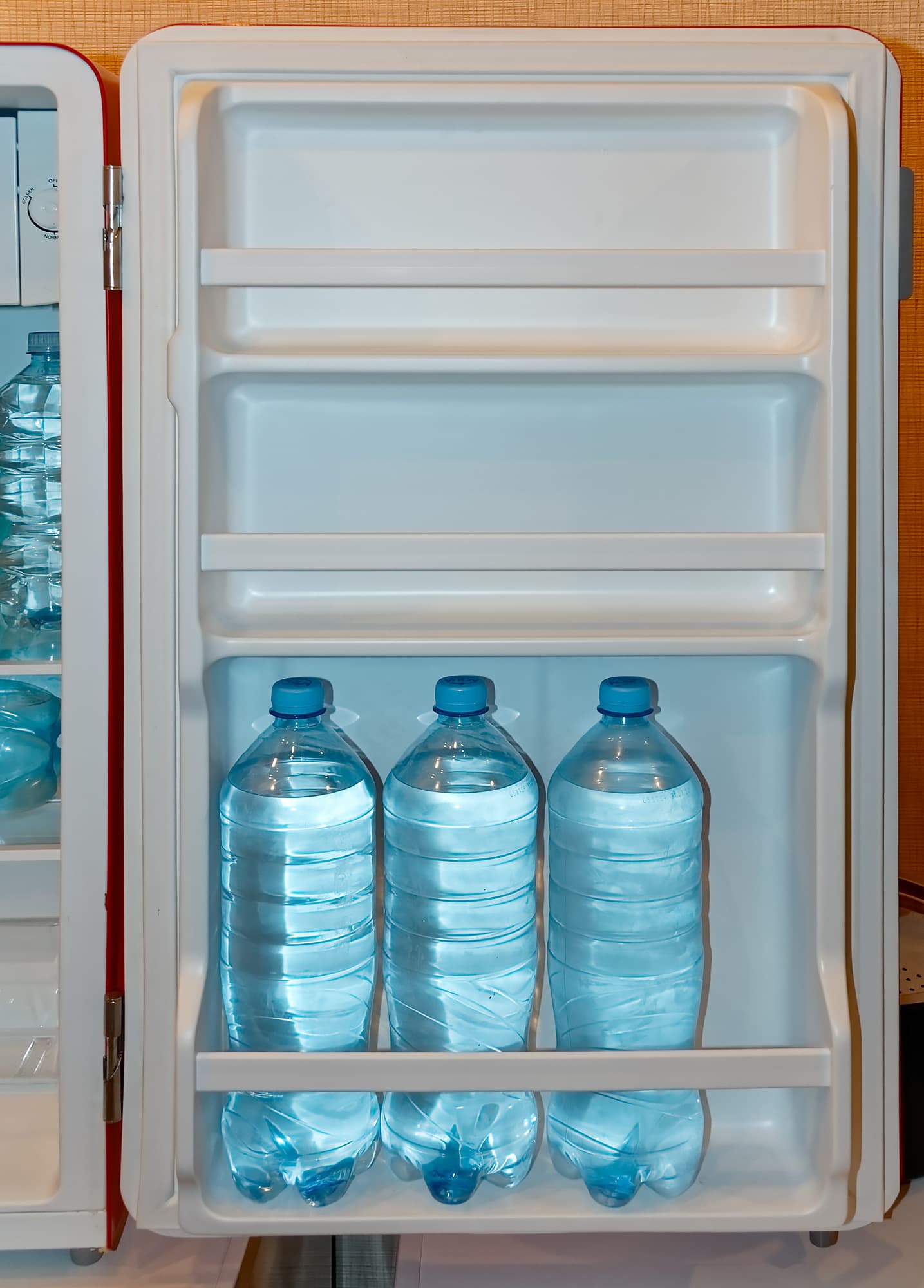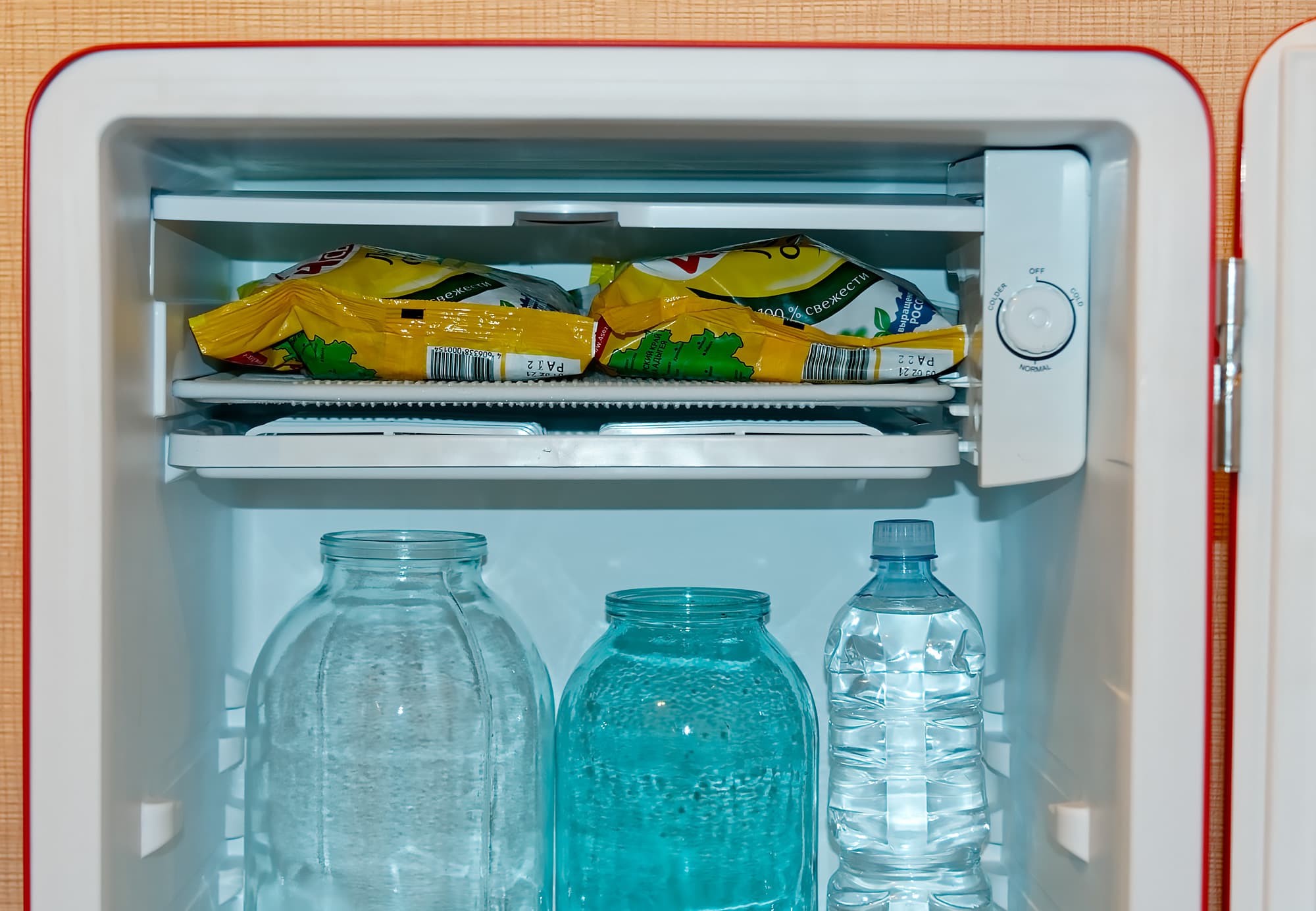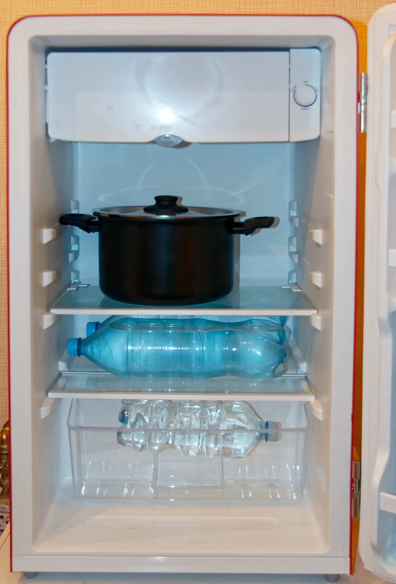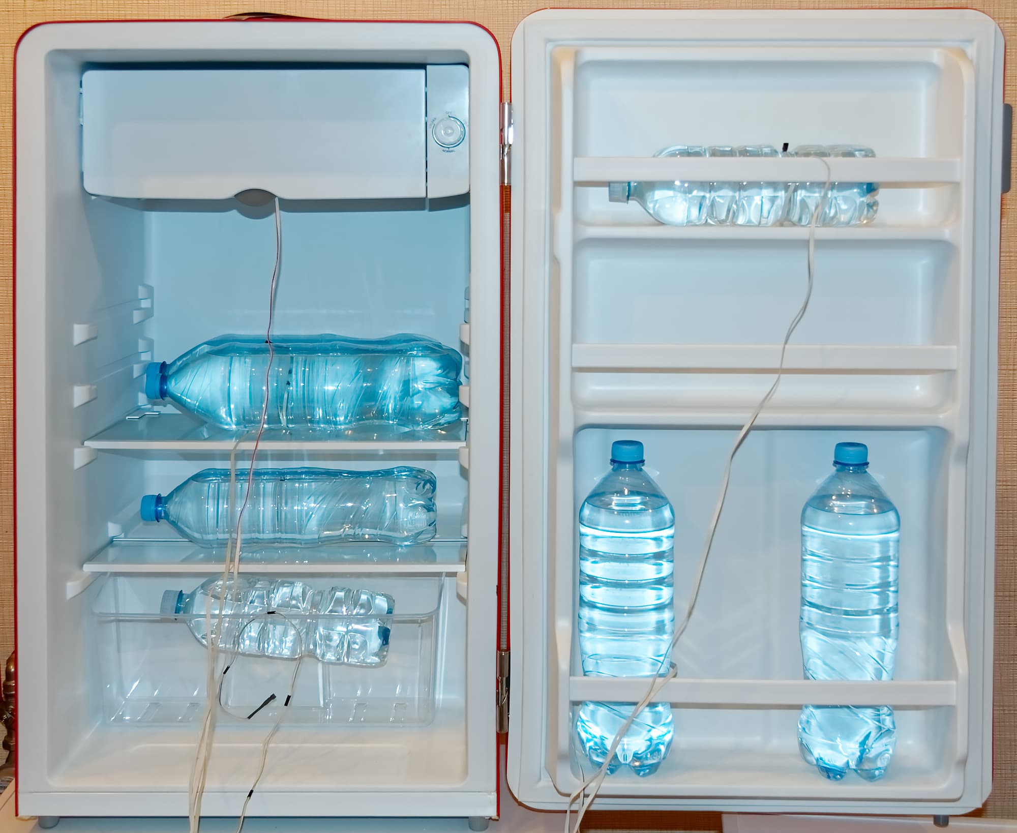 Чтобы имитировать работу загруженного холодильника, в процессе тестирования холодильной камеры мы использовали водяной балласт в пластиковых бутылках с водой разного объема.