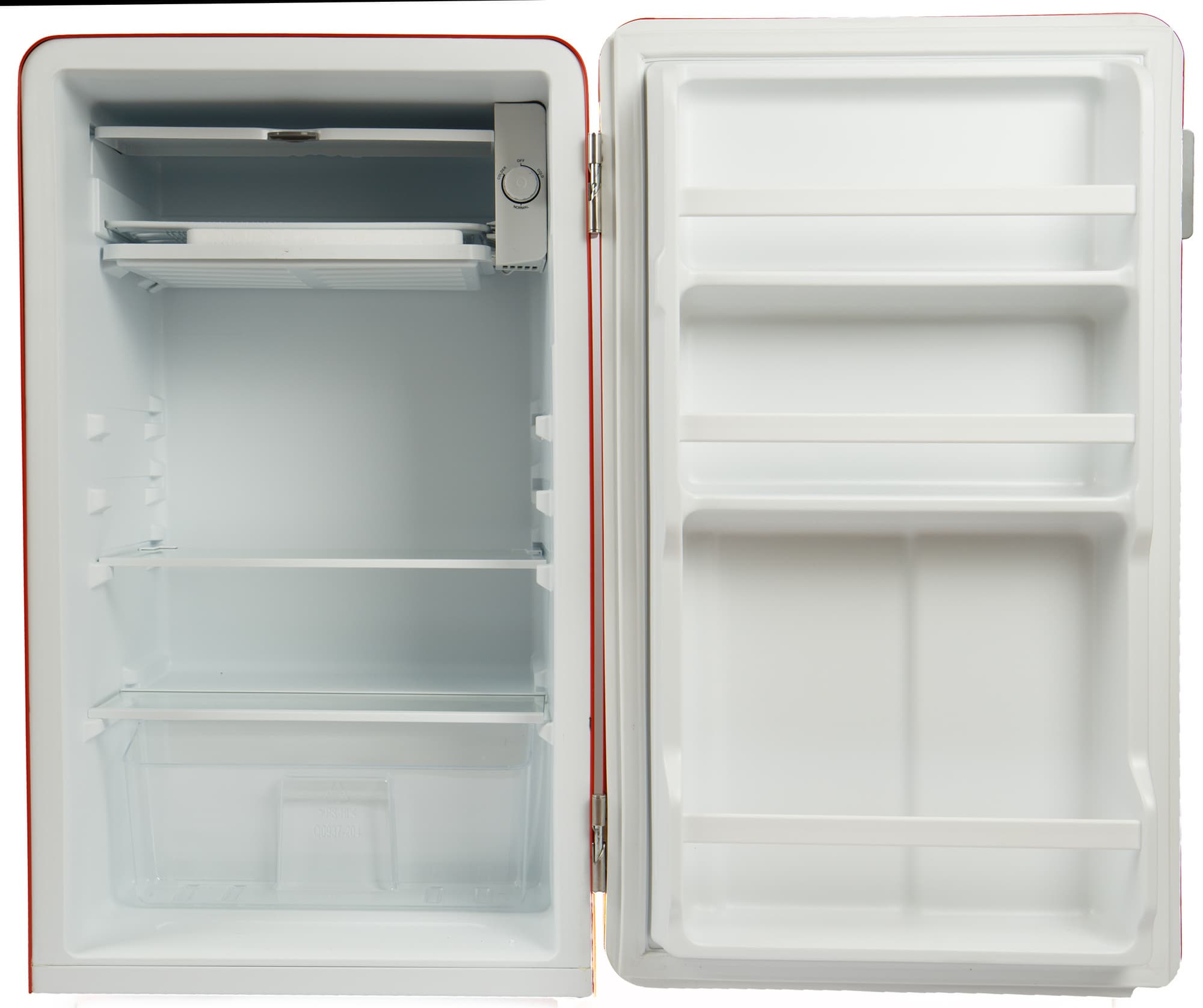 Внутренности холодильника, как водится, сделаны из белого пластика.