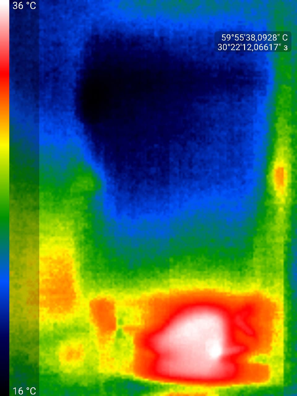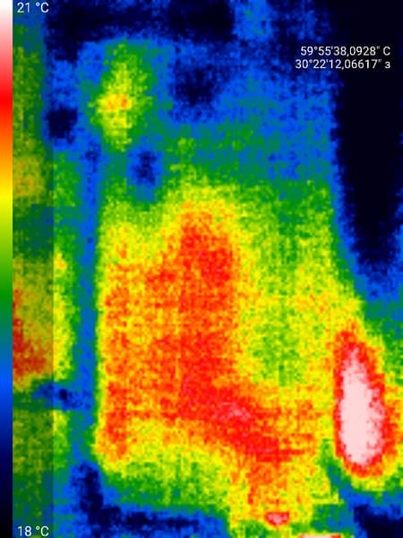 Как мы видим, на фото правая сторона холодильника выглядит гораздо более горячей, чем левая (судя по всему, через нее отводится лишнее тепло).