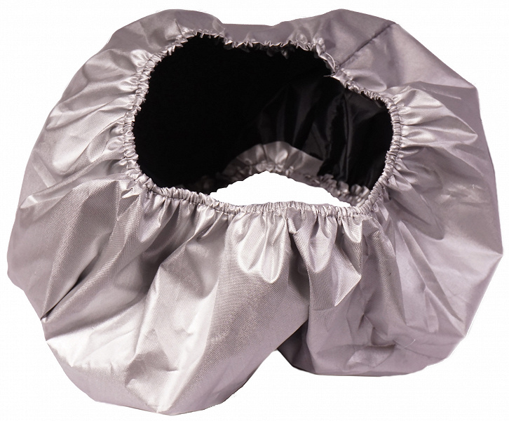 В комплекте также имеется непрозрачный чехол (если какие-то семена надо проращивать без доступа света). Чехол двусторонний, с лицевой стороны серебряный (светоотражающий), с изнанки черный (светопоглощающий). Он надевается поверх крышки прибора и препятствует попаданию света в вентиляционные отверстия в оной. При внимательном рассмотрении никаких ярлыков о составе ткани не найдено, но судя по ее шуршанию, это нейлон.