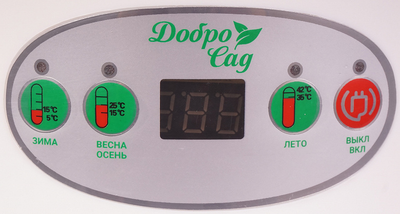 В процессе эксплуатации стало ясно, что ни о каком специфическом выборе температурного режима речи не идет. Кнопками можно только включить-отключить предустановленный режим («весна/осень», «лето» или «зима») и добавить часы на работу прибора (не убавить!).