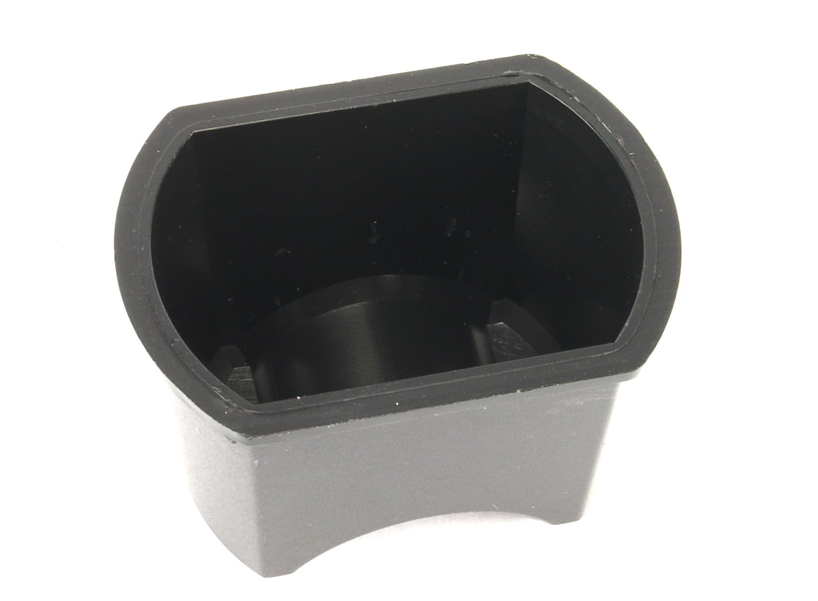 Держатель верхней панели представляет собой полый небольшой «стаканчик», верхняя сторона которого имеет изгиб (на фотографии держатель перевернут), повторяющий форму ручки откидной панели. Он справляется со своей задачей на троечку, так как его размера хватает лишь на центральную часть ручки, и в случае большего давления на панель слева или справа держатель может выскочить из-под ручки, так как помимо скромного размера, он еще и не имеет противоскользящих материалов по контуру дна.