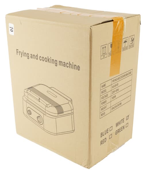 Кулинарная станция приехала к нам на тестирование в небольшой прямоугольной коробке из гофрированного картона. Спереди на упаковке схематически изображен сам прибор, а также напечатано его полное название.