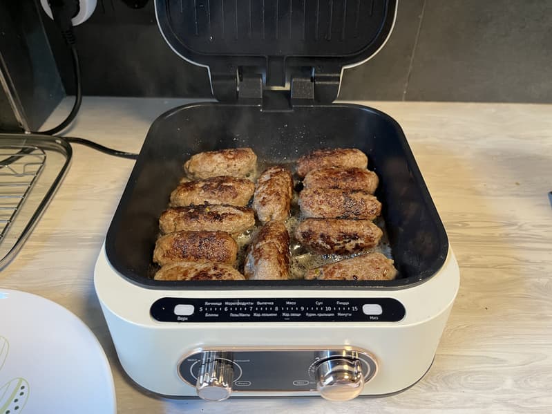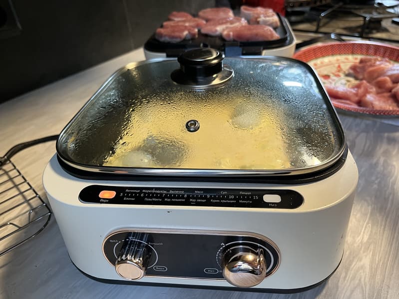 Возможность готовить сразу и в кастрюле, и на гриле нам понравилась. Думаем, ее оценят и те, для кого важна компактность и многофункциональность устройств — например, пользователи с маленькой кухней или те, кому потребовалась мобильная кухня.