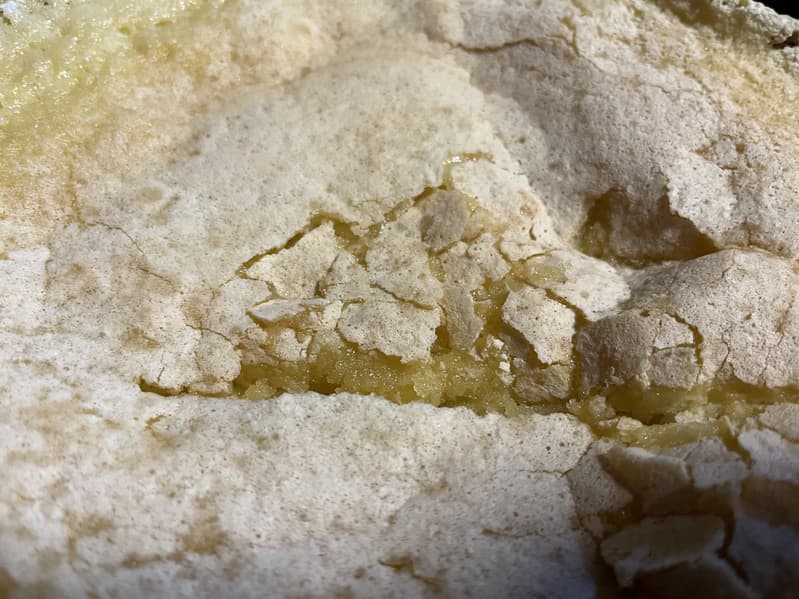 Чуда не произошло. Бисквит перестал быть совсем уж жидким внутри, но с помощью нескольких зубочисток, воткнутых в разных местах, мы выяснили, что он остается сырым по центру.