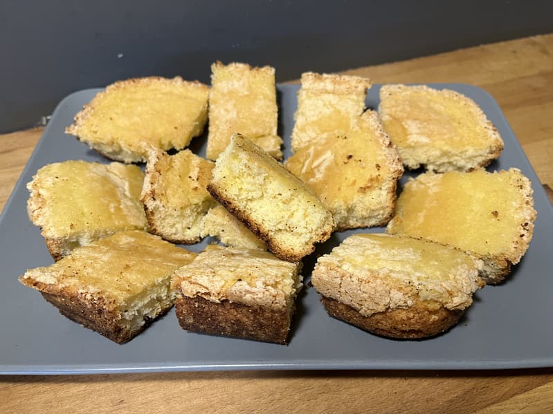 Нам пришлось срезать подгоревшую часть бисквита и вырезать небольшой кусок центральной части, чтобы спасти хотя бы часть коржа. Было принято решение сделать из получившихся кусочков бисквитное печенье.
