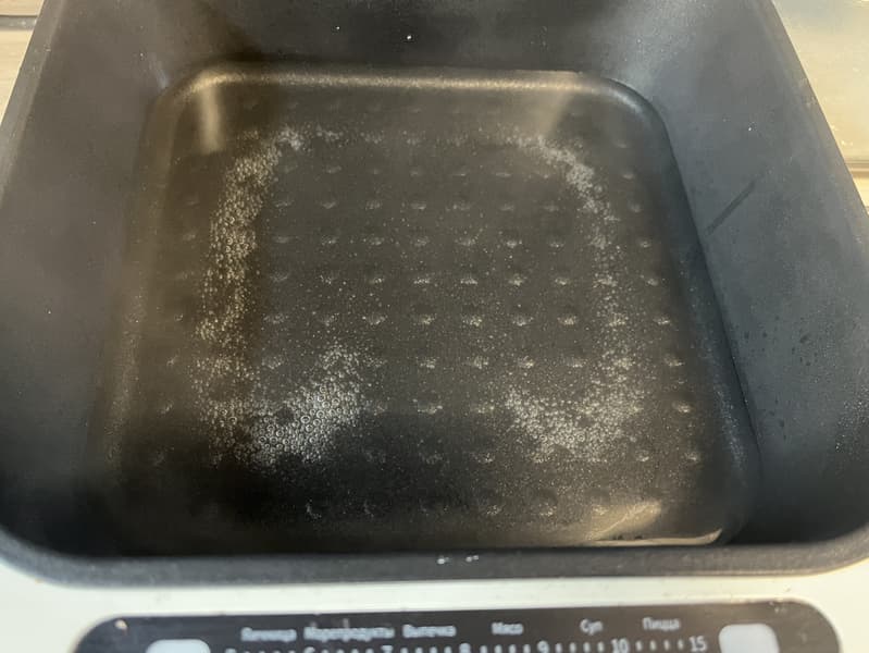 Квадратная кастрюля, расположенная в нижней части прибора также имеет антипригарное покрытие и тэн, расположенный под днищем.