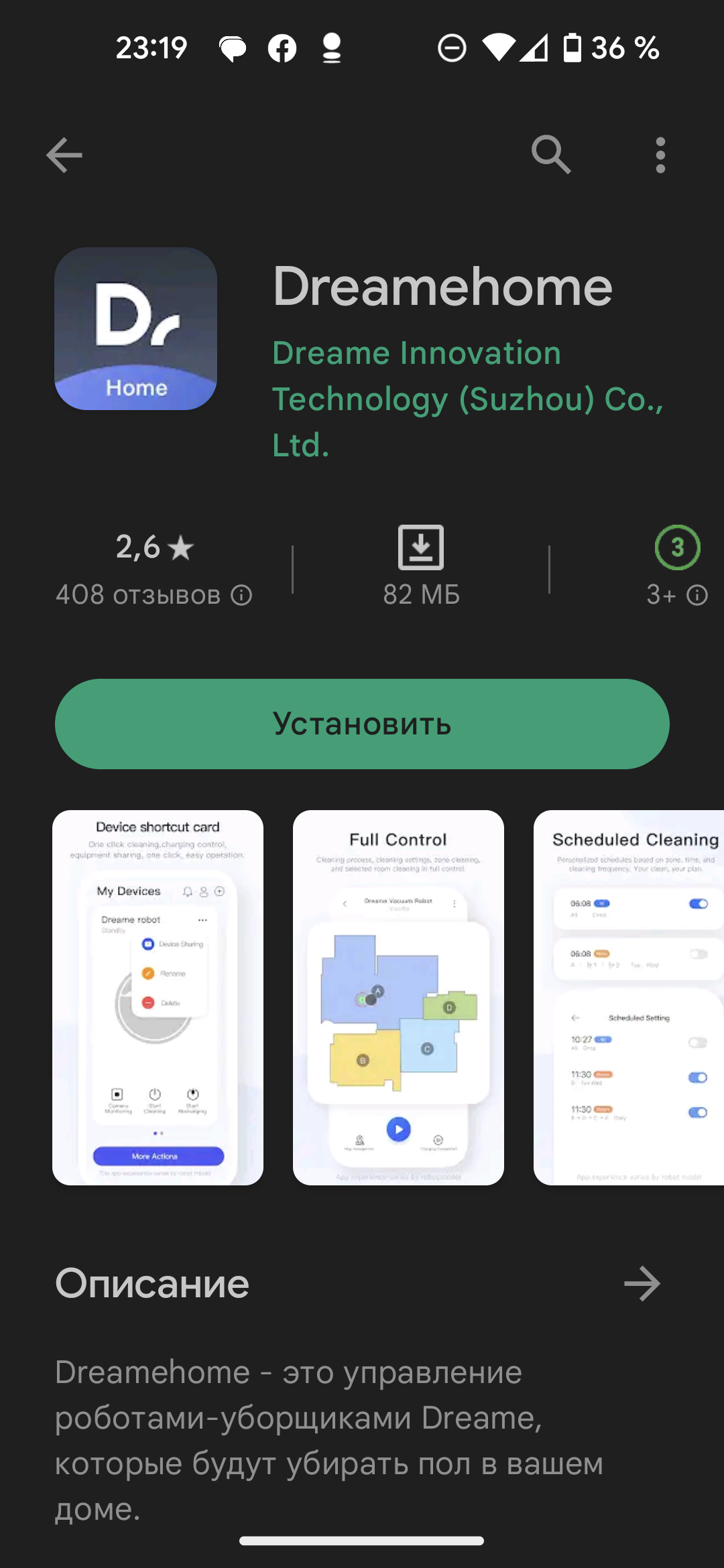 Для управления роботами Dreame производитель предлагает приложение Dreamehome собственной разработки. На момент создания обзора оно насчитывает более 50 тысяч скачиваний и обладает средним рейтингом (оценка 2,6 на основе 408 отзывов).