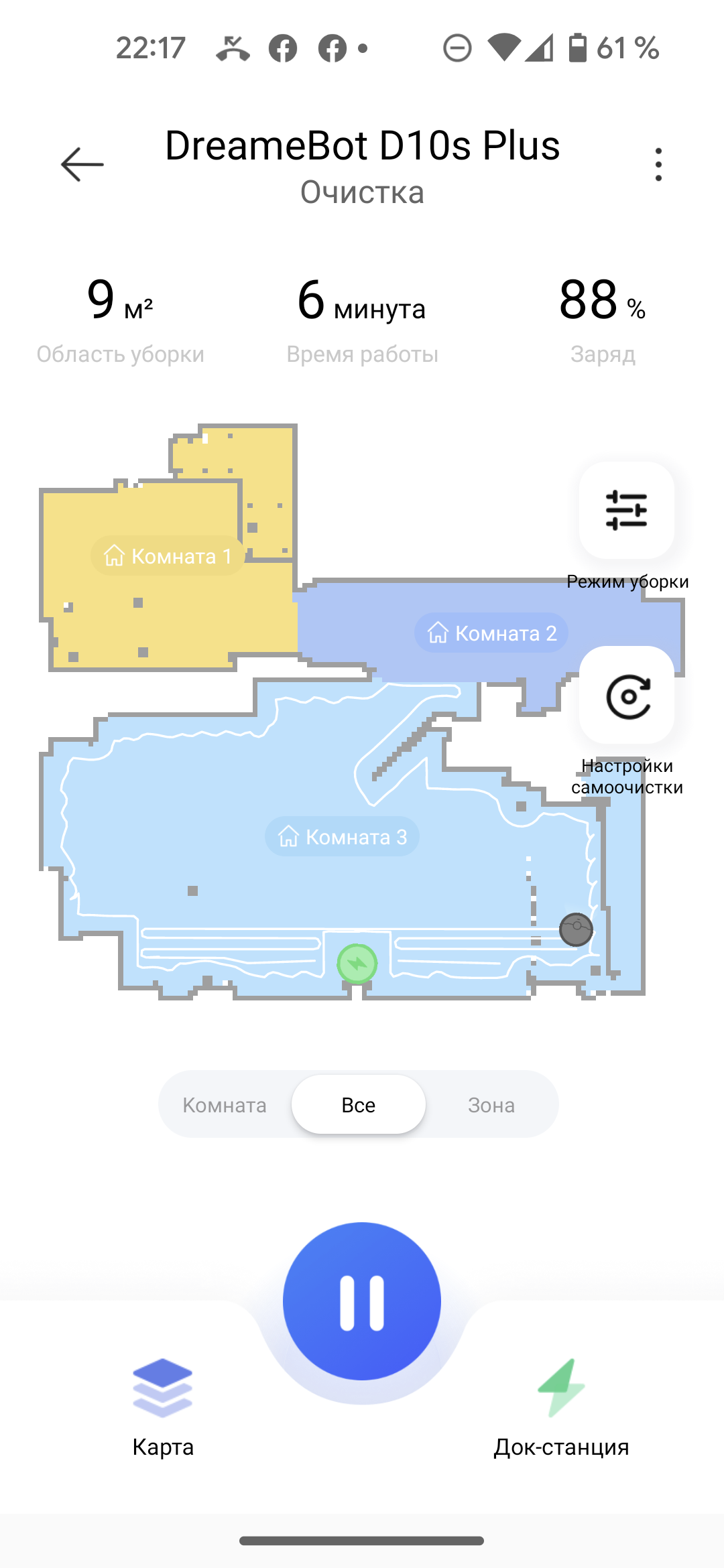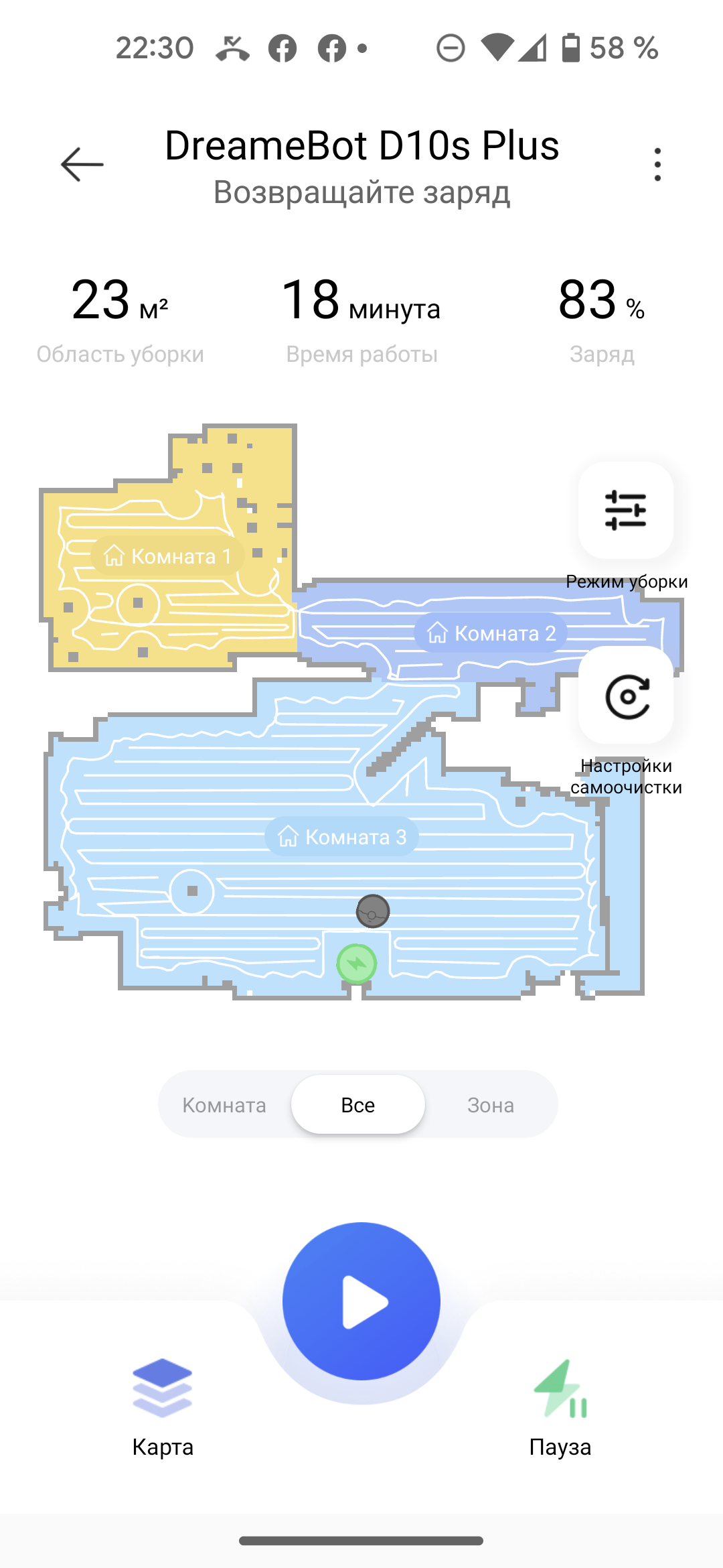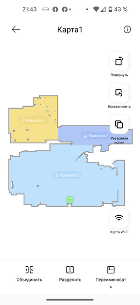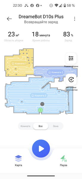 Закончив с одним участком, пылесос переходит на следующий. И так — пока не кончится доступная площадь. Тогда он возвращается на базу для зарядки и самоочистки, а новая карта в приложении тем временем разбивается на комнаты.