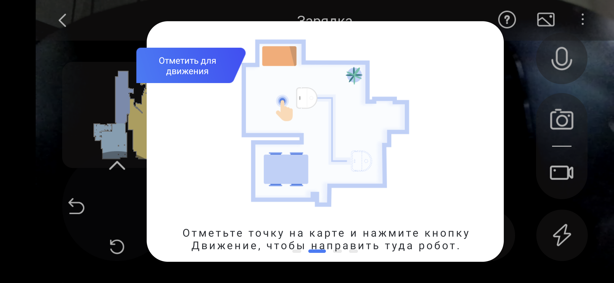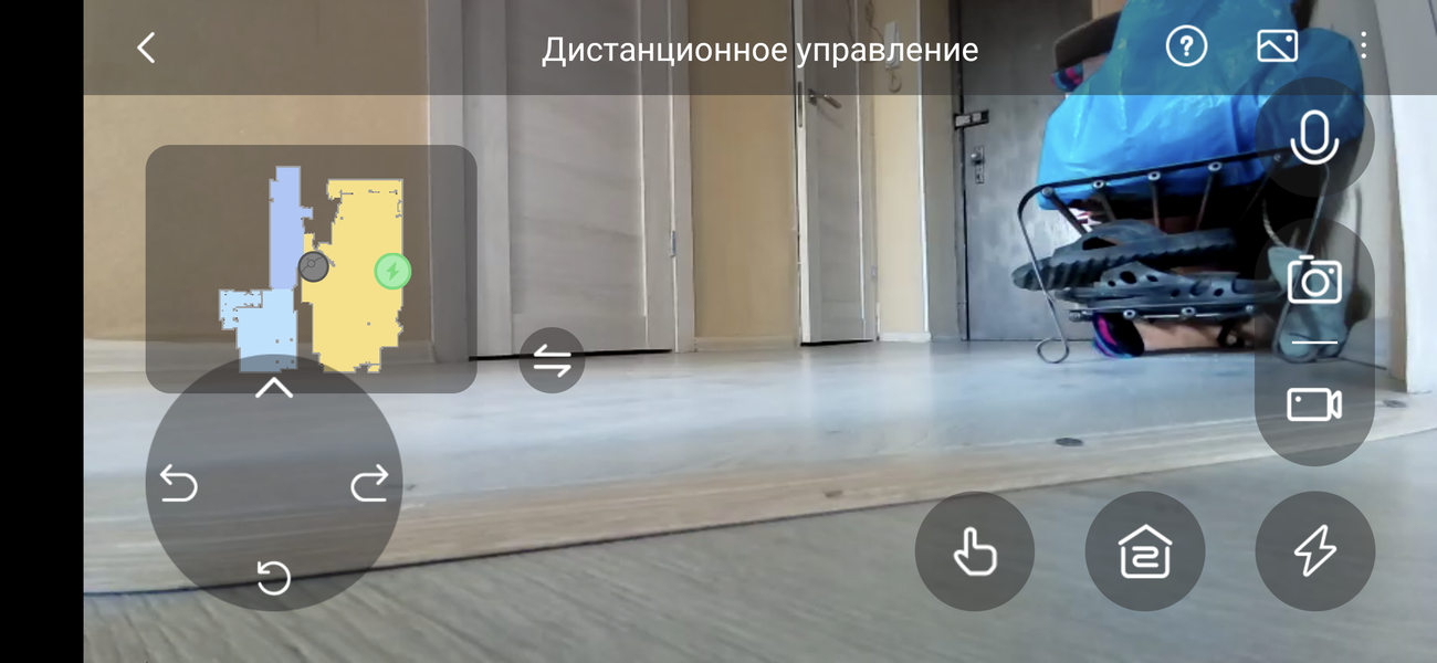 С помощью пункта «Дистанционное управление» можно превратить экран приложения в пульт ДУ, позволяющий направить робота в нужную точку квартиры. Но значительно увлекательнее делать это из главного меню, управляя пылесосом с включенной камерой (в следующей главе мы продемонстрируем такую возможность).
