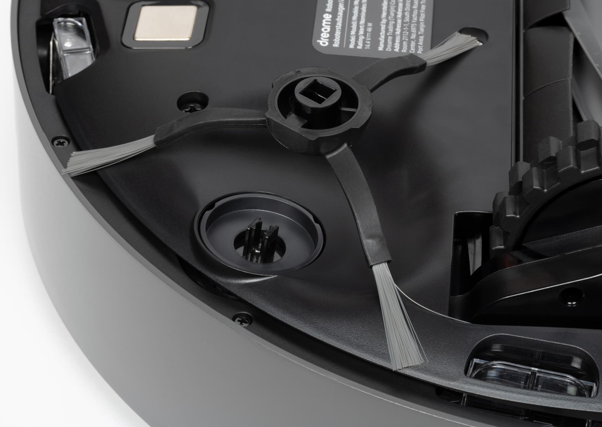 У ходовой части Dreame D10s Plus традиционная, проверенная временем конструкция. Робот приводится в движение двумя ведущими колесами, а в дополнение к ним в передней части есть третье, опорное. Шаг подвески ведущих — от 7 до 36 мм. Выраженные протекторы обеспечивают хорошее сцепление со всеми видами напольных покрытий.