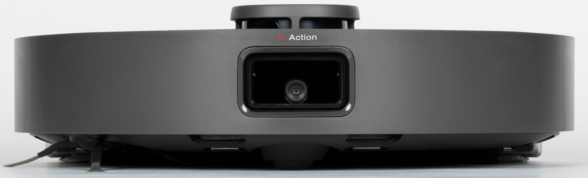 Вместо традиционных инфракрасных сенсоров спереди можно видеть окошко камеры, с помощью которой прибор анализирует обстановку в помещении и определяет препятствия. Доступ к камере может получить и пользователь с помощью мобильного приложения (мы расскажем об этом ниже).