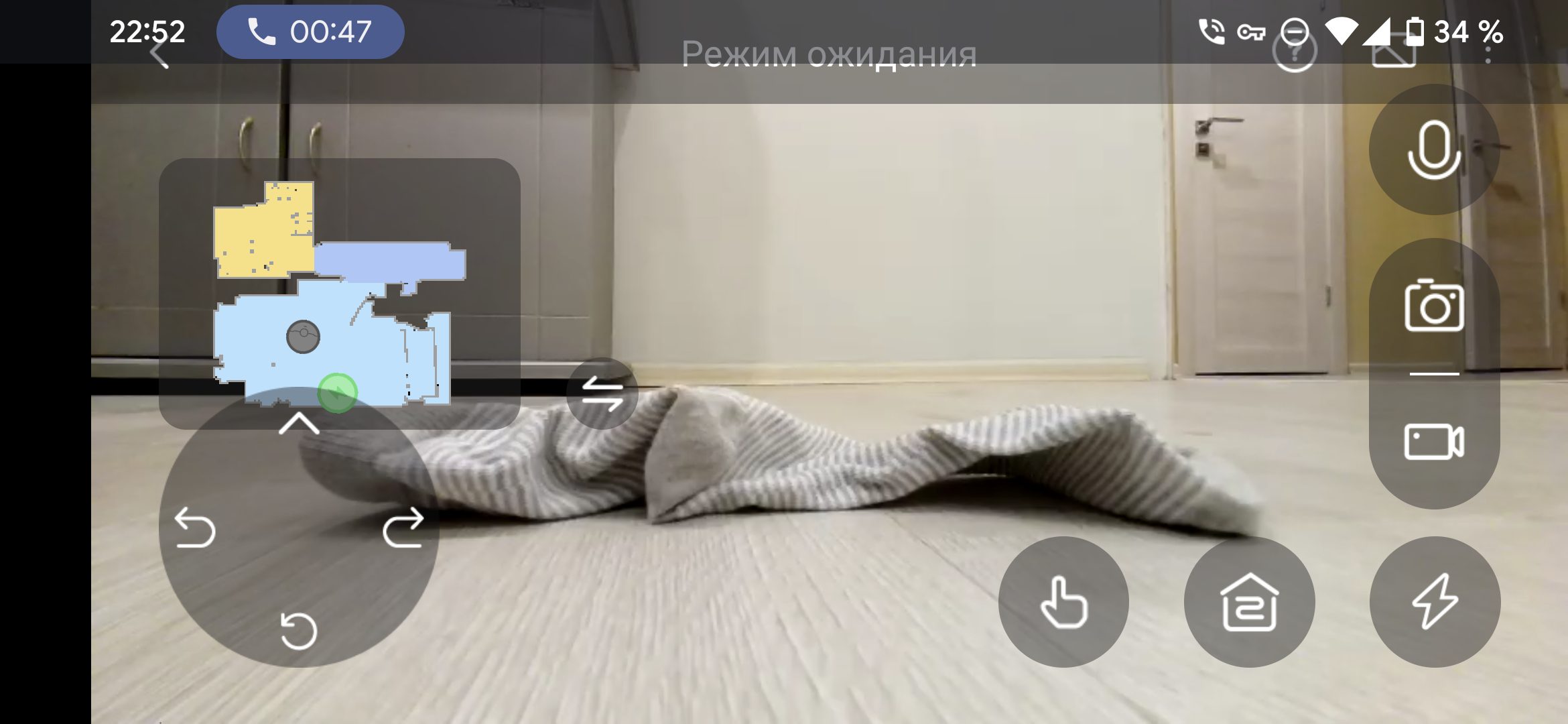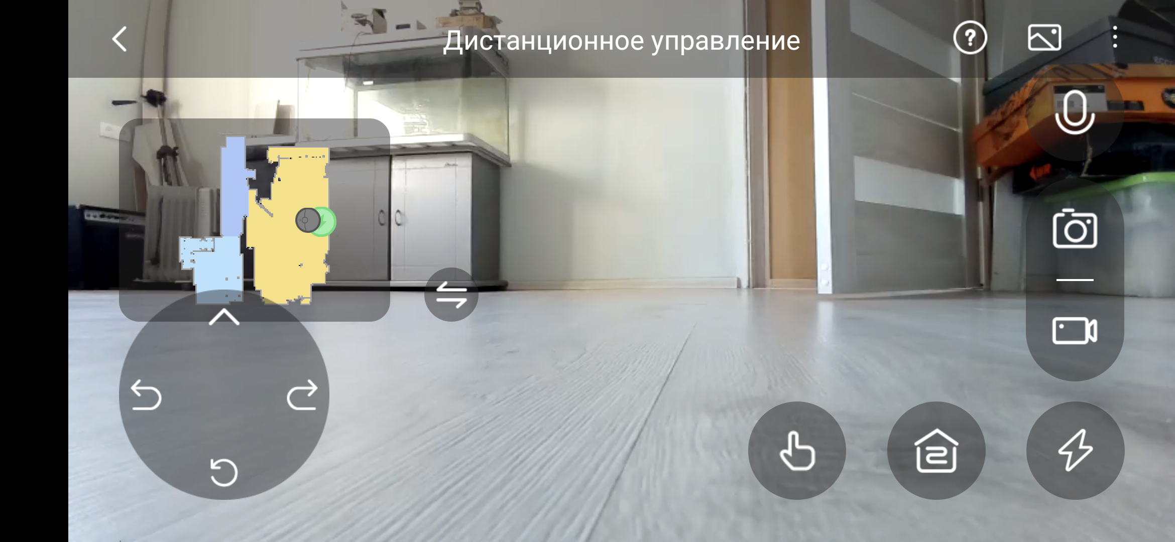 Курсовая камера робота дает хорошую картинку и позволяет оценить обстановку в квартире, используя устройство как подвижную камеру видеонаблюдения.