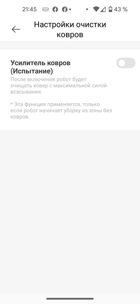 Если в части дома на полах постелены мягкие покрытия, рекомендуется включить опцию с забавным названием «Усилитель ковров»: тогда при переходе на такой пол робот будет автоматически поднимать мощность до максимальной.