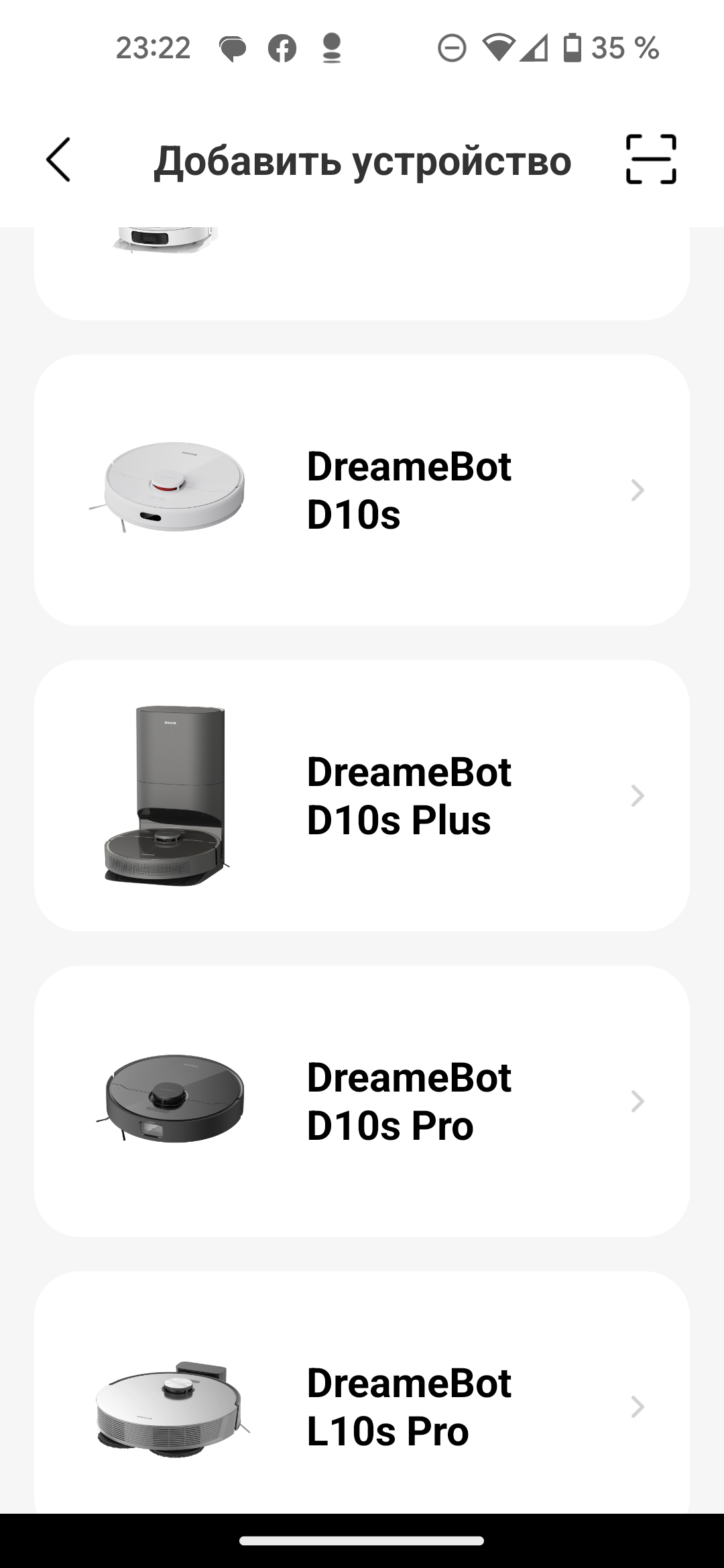 Для начала синхронизации мы можем воспользоваться ссылкой «Добавить устройство» и выбрать нашу модель из недлинного списка поддерживаемых роботов, а можем просто отсканировать QR-код на корпусе прибора (это потребует разрешения на доступ к камере смартфона).
