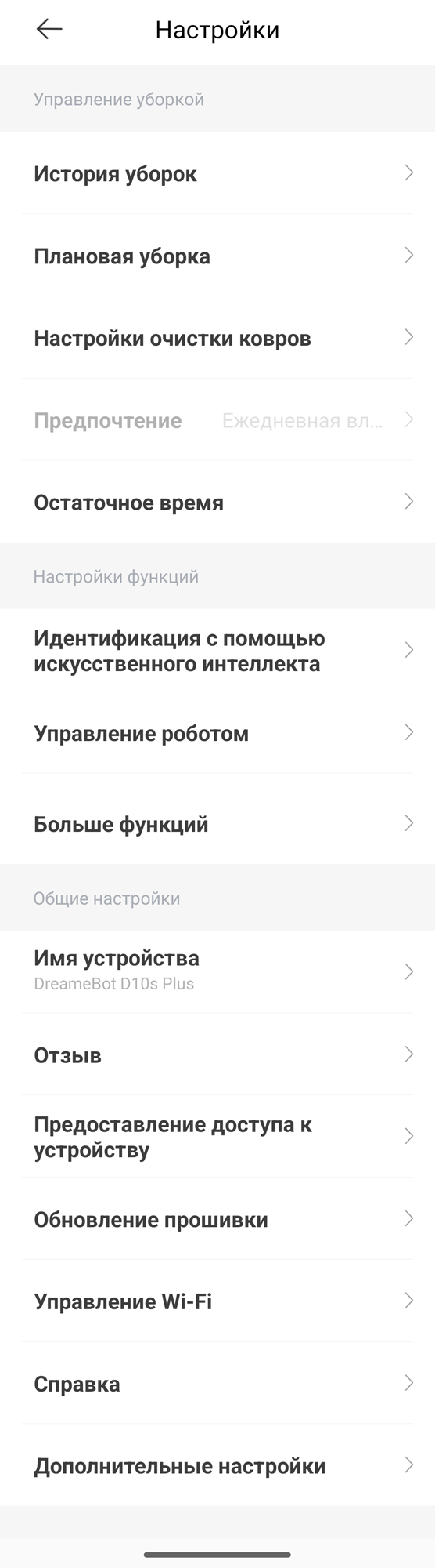 После этого крайне желательно заглянуть в настройки. Их у Dreame D10s Plus множество.
