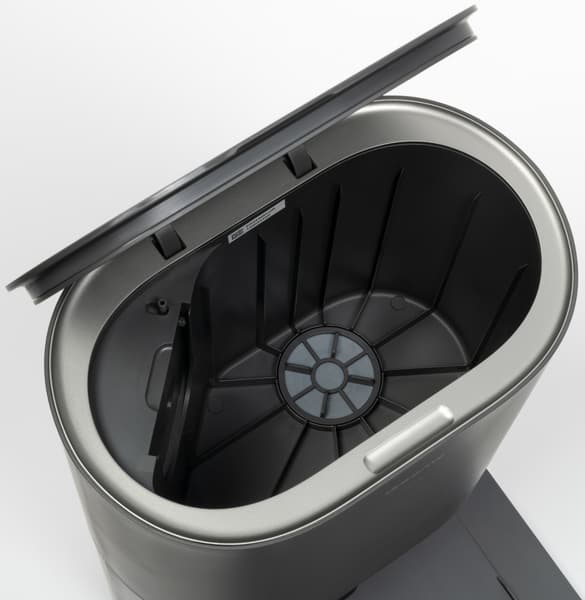 Контейнер для мусора скрывается под откидывающейся верхней панелью.