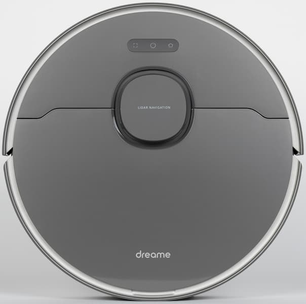 Как и у подавляющего большинства роботов-пылесосов, корпус у Dreame D10s Plus круглый. Он сделан из темно-серого пластика, приятного на ощупь, а размер его внушает уважение: диаметр диска — целых 35 см. Верхняя панель украшена логотипом производителя, а на башенке лазерного дальномера красуется надпись «Lidar Navigation»: изготовитель счел нужным подчеркнуть одну из основных особенностей модели.