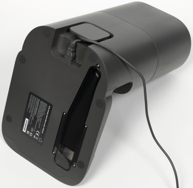 В задней части базы есть отсек для хранения излишков шнура, а основание снабжено резиновыми накладками, исключающими скольжение по гладкой поверхности. На нижней стороне станции наклеен шильдик с краткими техническими характеристиками и серийным номером.