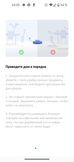 При первом знакомстве с приложением оно выдает ряд рекомендаций, которые сделают работу пылесоса эффективнее: перед началом его работы крайне желательно убрать возможные препятствия и собрать с пола провода и мелкие вещи, которые могут затруднить перемещения. На этом этапе можно сообщить устройству, что в доме есть неаккуратные домашние животные: тогда пылесос будет стараться распознавать следы жизнедеятельности на полу и по возможности объезжать их. Эту опцию оценит всякий собаковод или кошковладелец, хотя бы раз отмывавший робота-пылесоса после того, как тот въехал в кучку экскрементов и размазал их по полу.