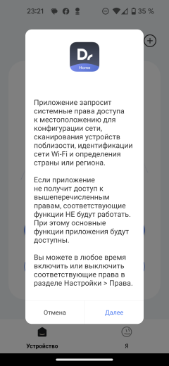 Для нормальной работы приложению требуются разрешение на отправку уведомлений и доступ к информации о местоположении устройства.