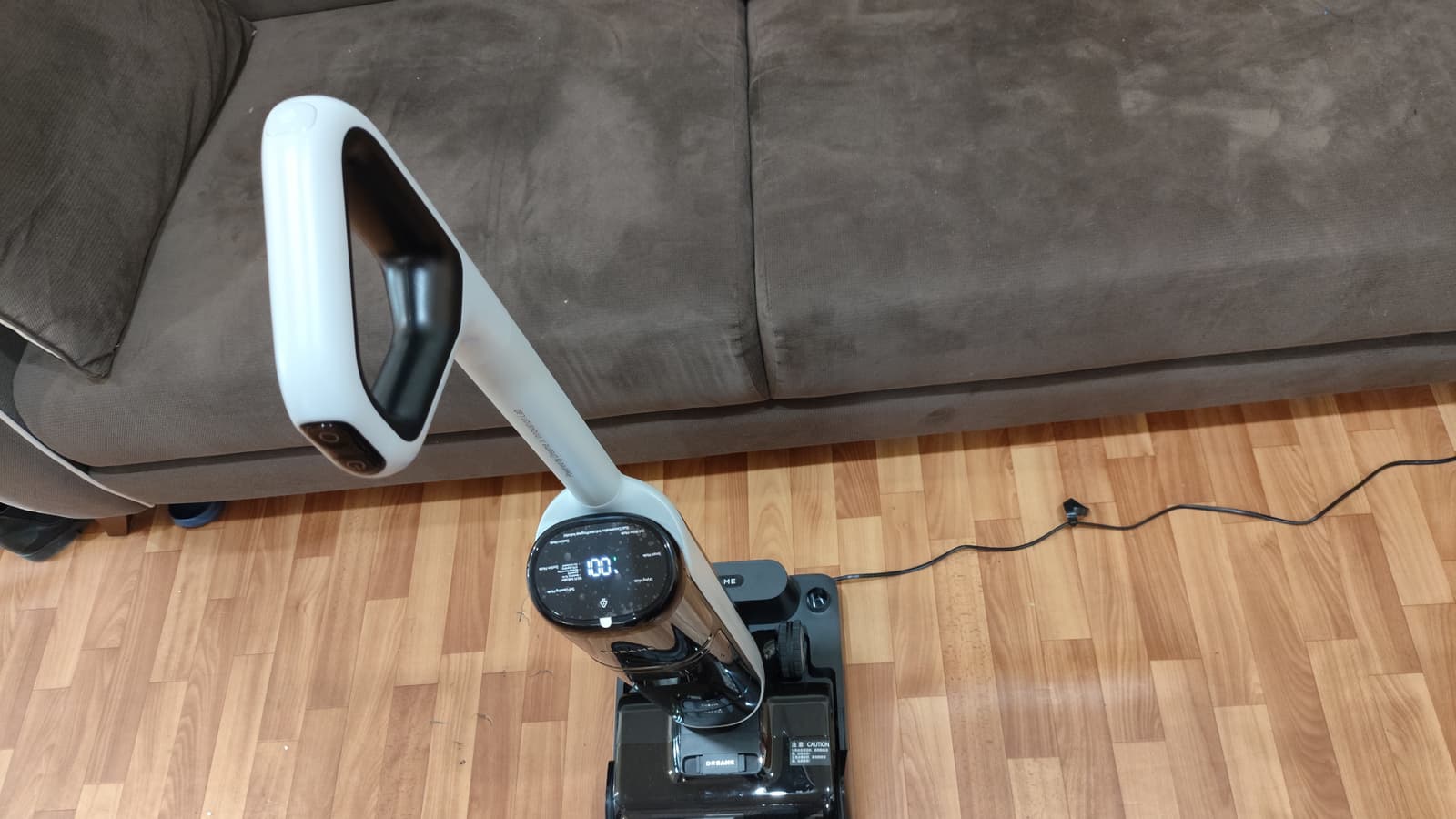 А вот с мытьем пола наш Dreame справляется отлично. Модель обеспечивает полноценную и качественную мойку, эффективно собирая и удаляя даже обильную и застарелую грязь. Если на полу появились засохшие пятна — не беда. В большинстве случаев будет достаточно пройтись несколько раз. В особо сложных случаях — потратить несколько минут. Здорово помогает в этом случае режим подогрева воды. Конечно, аккумулятор в этом случае будет разряжаться довольно быстро, зато борьба с пятнами выходит на качественно новый уровень! Разработчик обещает нам, что температура нагрева воды при мойке пола достигает 85 °C. Проверить это утверждение сложно, однако выглядит довольно правдоподобно. Особенно, если не слишком спешить с уборкой.