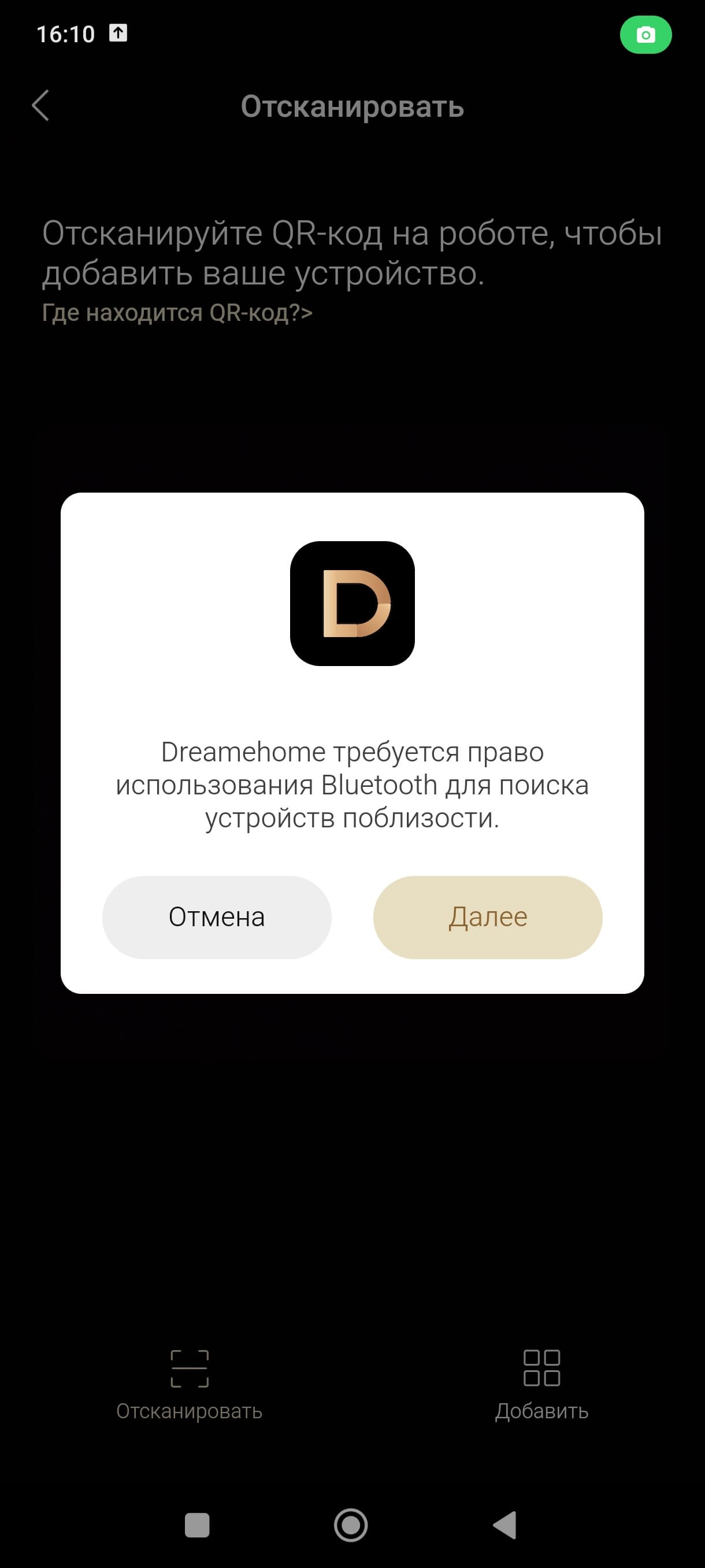 Наш пылесос допускает и некоторое «управление» посредством мобильного приложения. Попробуем установить приложение Dreamehome и посмотрим, что у нас получится.