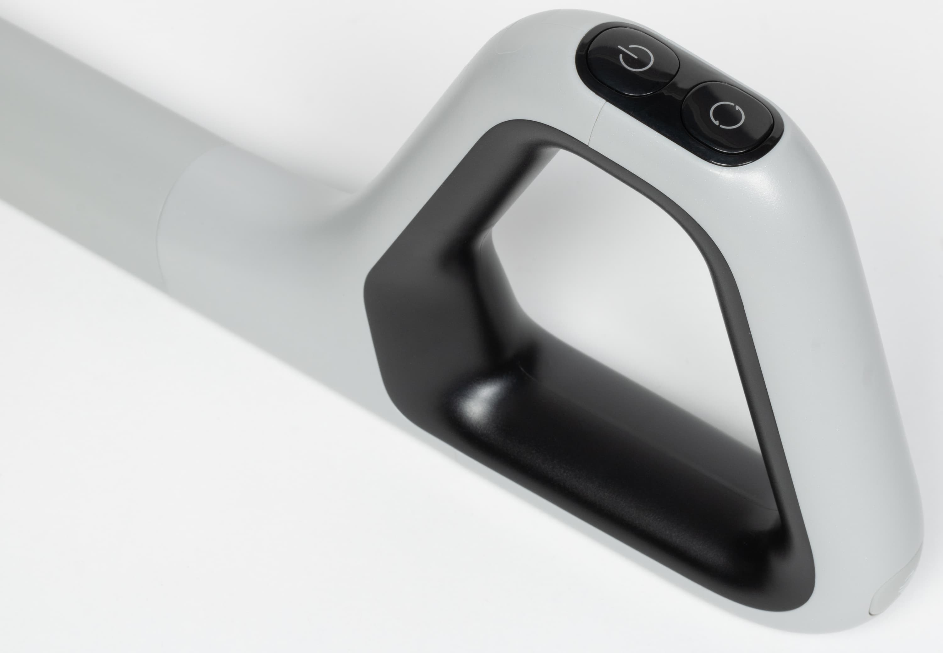 На D-образной рукоятке находятся две кнопки управления: одна включает и выключает прибор, вторая переключает режимы работы.