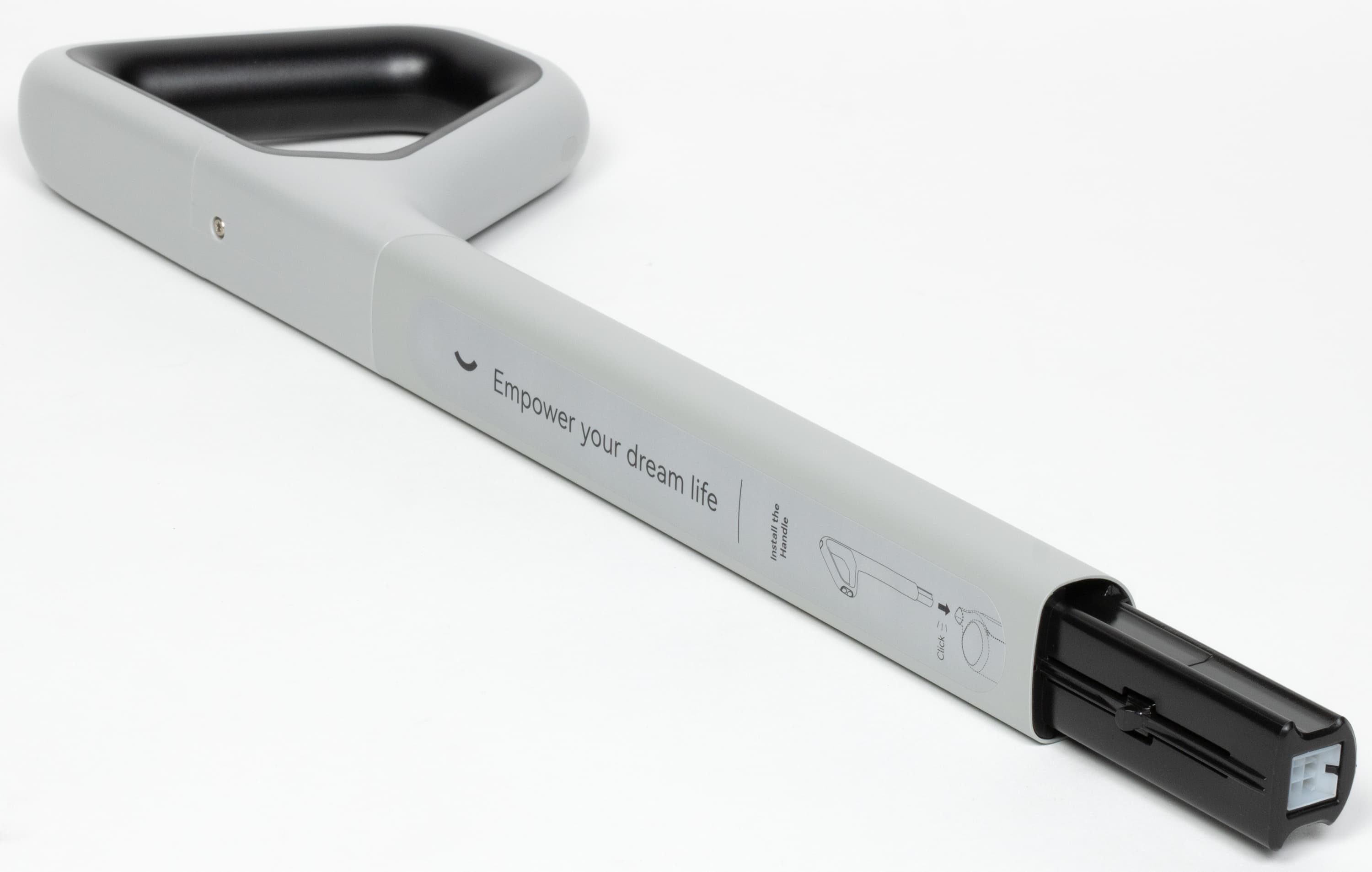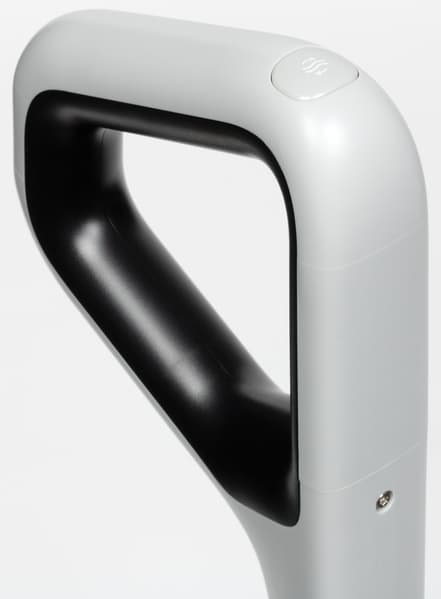 Блок управления размещается на D-образной рукоятке удлинительной ручки (ее после распаковки нужно «защелкнуть» на моторном блоке). Чтобы снять ручку, придется надавить на специальную утопленную кнопку (придется вооружиться небольшой отверткой или подобным устройством).