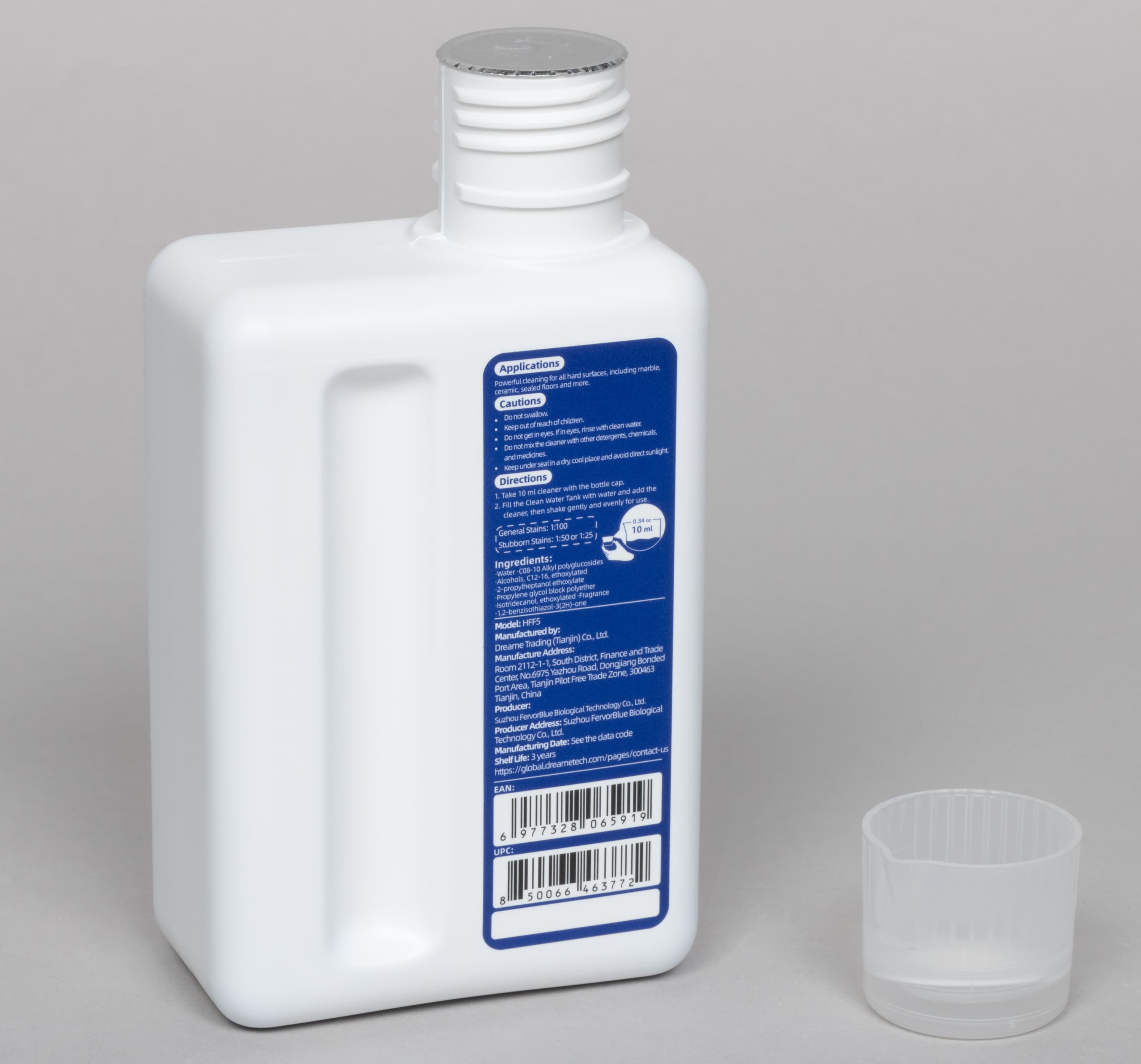 В комплекте с пылесосом также обнаружилась бутылка с фирменным моющим средством объемом 500 мл.