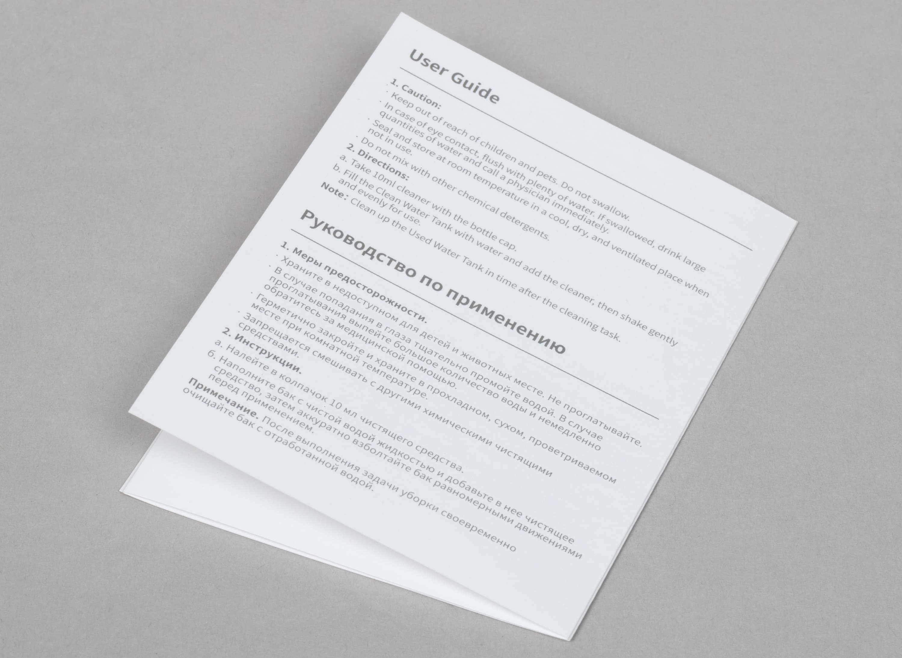 Также в комплекте обнаружилась брошюрка-инструкция для чистящего средства.