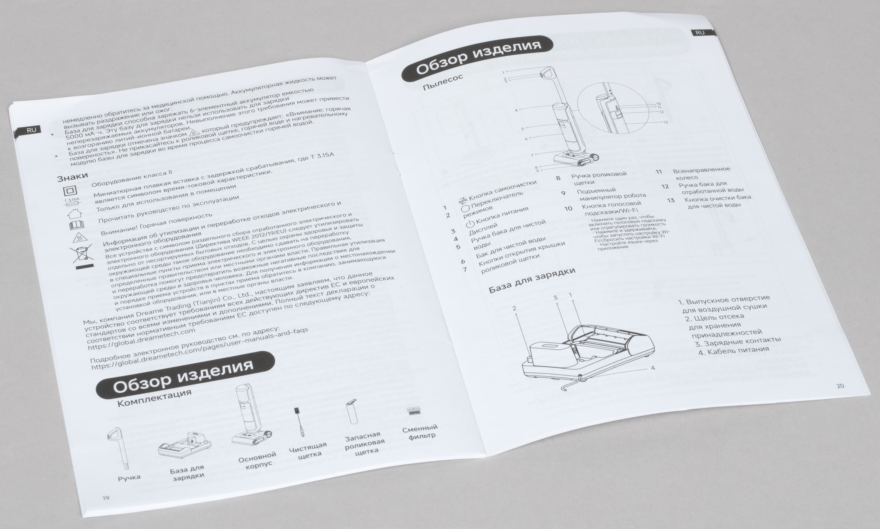 - базу для зарядки и очистки