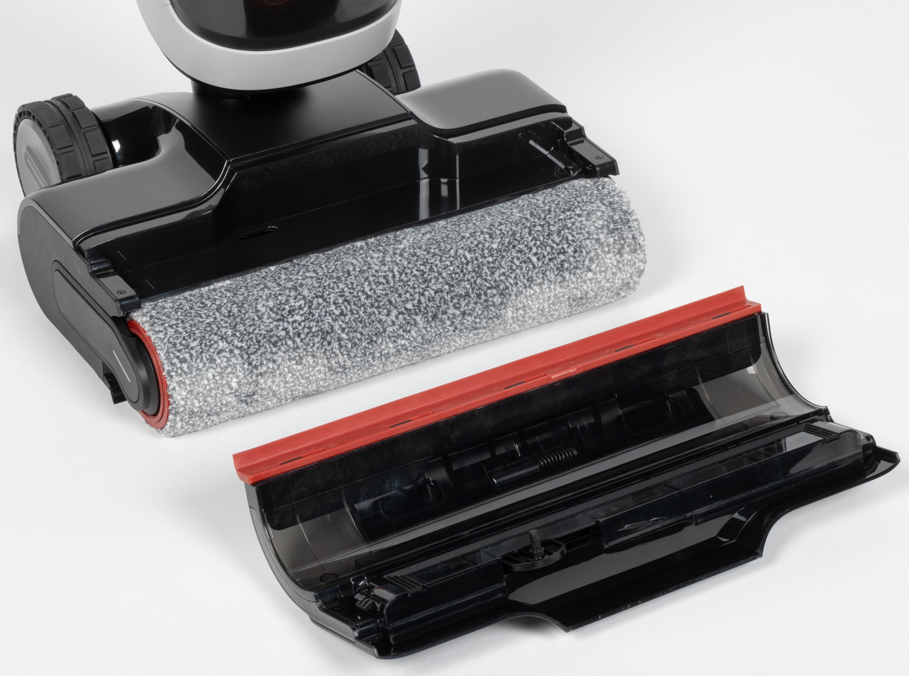 За время эксплуатации мы не столкнулись с необходимостью очищать устройство от намотавшихся волос, что нас немало порадовало. Тем не менее, роликовую щетку надлежит регулярно извлекать и осматривать на предмет наличия запутавшегося мусора. Подъемный скребок также предстоит время от времени промывать и просушивать.