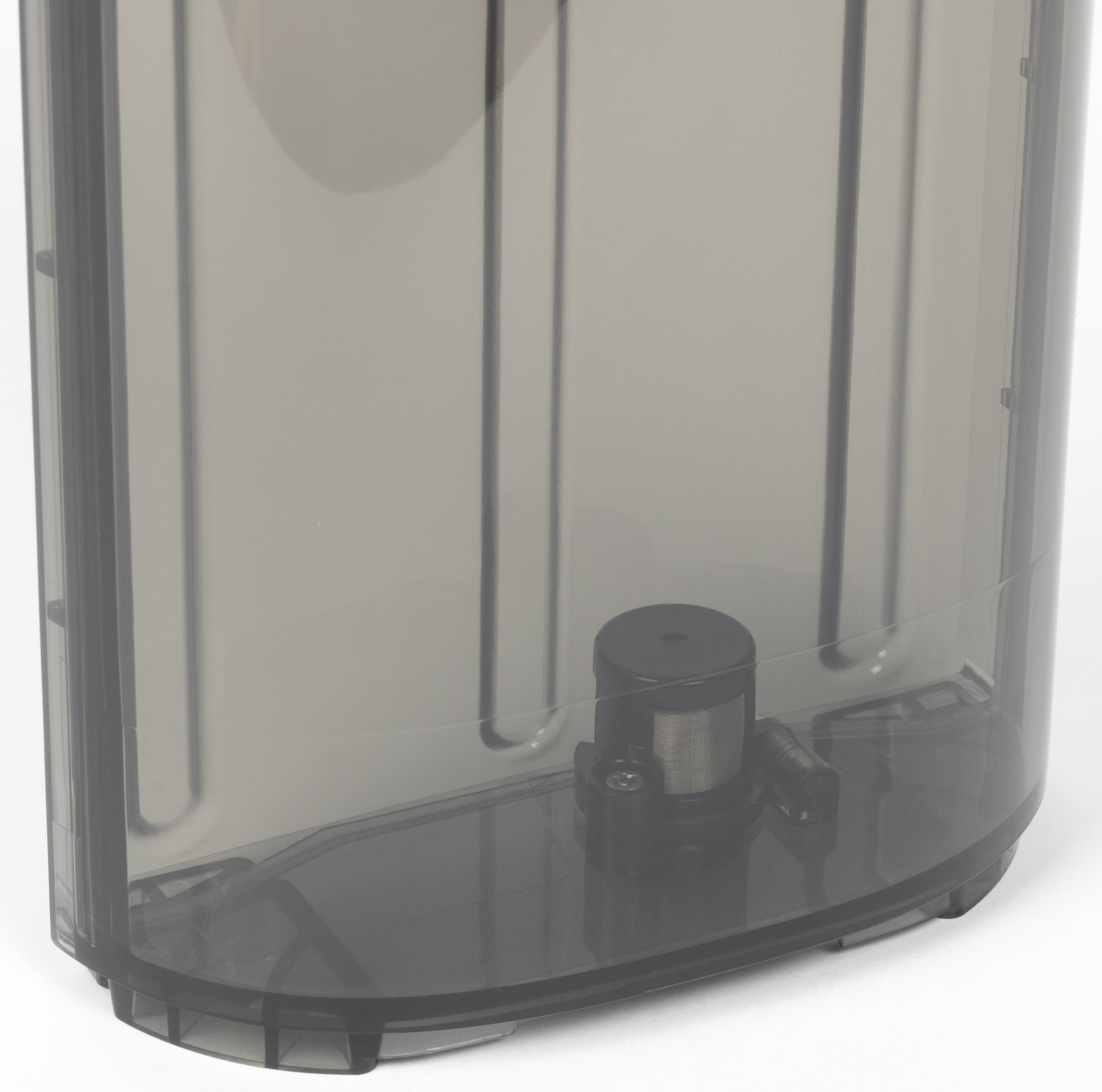 Стенки обоих контейнеров — из серого прозрачного пластика. Бак для чистой воды заполняется через горловину с откидной крышкой-пробкой.