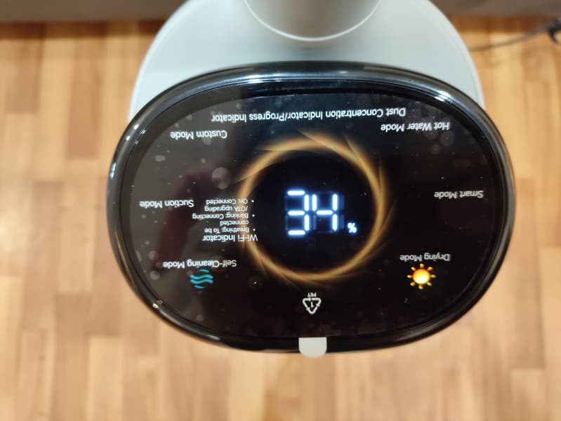 Перед началом эксплуатации нового прибора его аккумулятор следует полностью зарядить. Традиционно мы оставили прибор на базе на всю ночь. Уровень зарядки отображается на дисплее устройства, а по окончании цикла индикаторы гаснут: можно приступать к уборке.