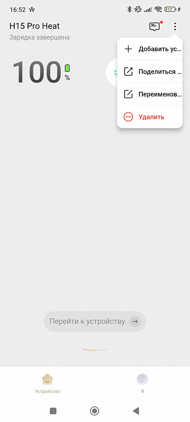 В итоге мы получили возможность просмотреть уровень заряда, а также дистанционно включить автоматическую промывку и сушку ролика.