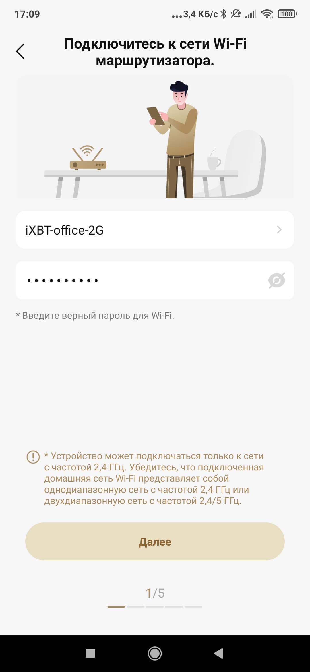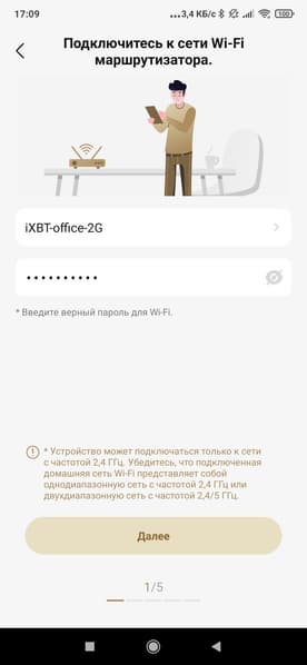 Процесс сопряжения активируется одновременным нажатием на кнопки «Power» и «Home». После этого приложение запрашивает SSID и пароль от нашей домашней сети. Передача сетевых настроек занимает менее минуты и успешно завершается без каких-либо затруднений.