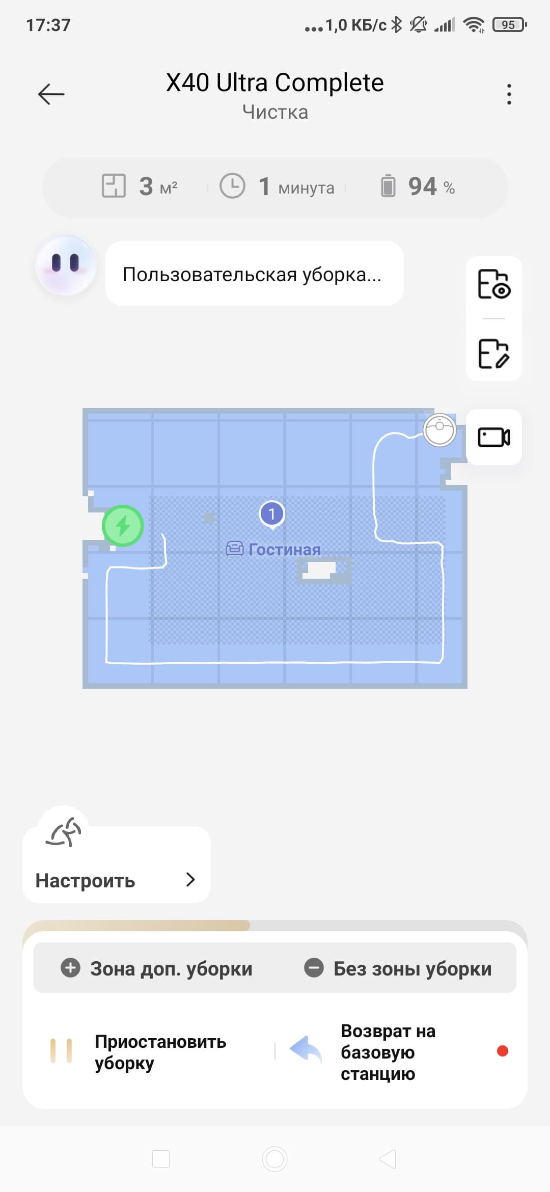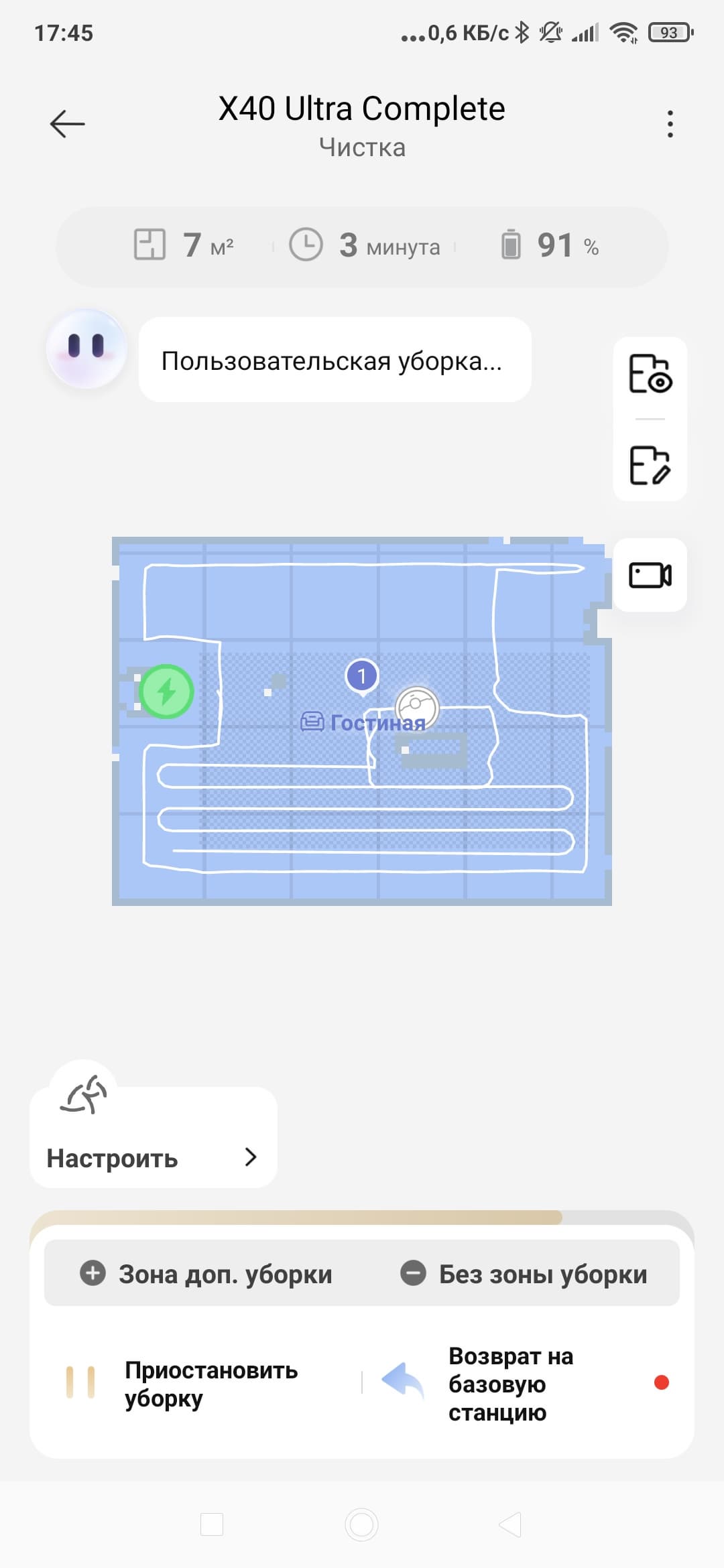 Тут мы можем записать небольшое видео и мгновенно загрузить его на свой смартфон. Качество среднее, однако режим вполне рабочий. А можно пообщаться с тем, кто в данный момент находится дома. Буквально, «позвонить на пылесос».