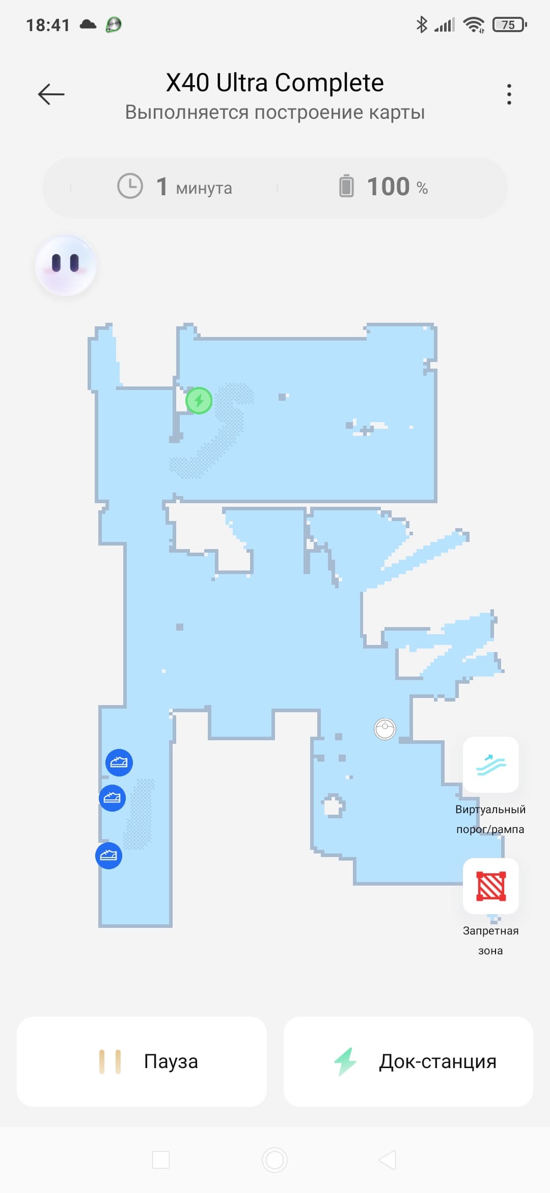 Оказавшись в незнакомом помещении, робот деловито осматривается и, приступая к построению карты, начинает рисовать на экране мобильного приложения все, что увидит. Впоследствии, уже в процессе уборки, карта будет дополняется. На ней, например, могут появиться новые препятствия (они будут сфотографированы и отмечены соответствующими иконками).