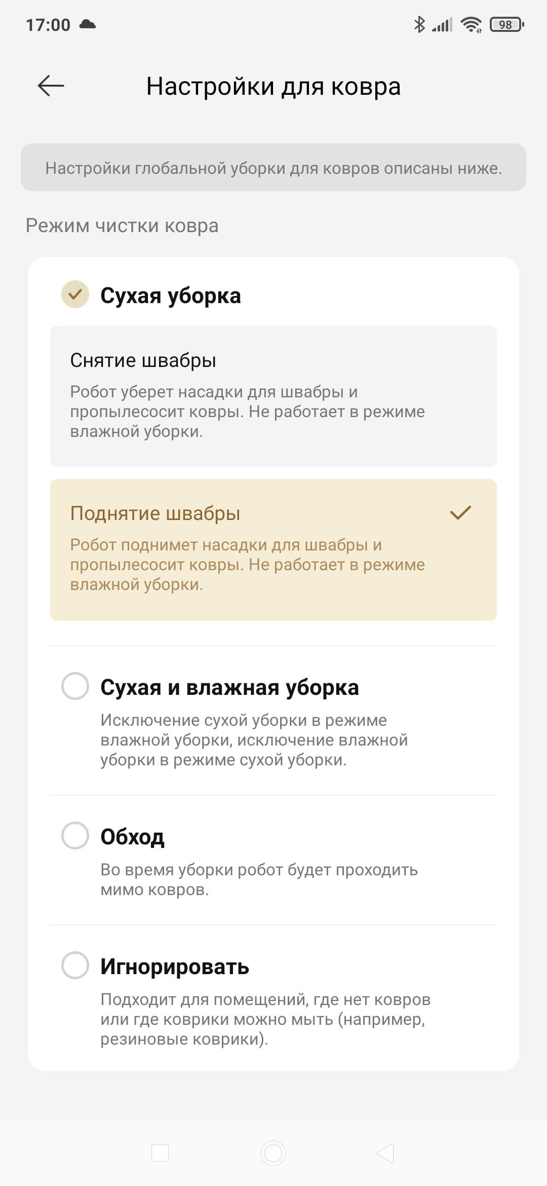 Увы, но без опечаток и незначительных ошибок в приложении не обошлось. В большинстве случаев они не мешают, однако иногда могут ввести в заблуждение. Например, приложение сообщает, что робот проводит сухую уборку, а по факту он работает в режиме совмещенной (сухой и влажной) уборки.