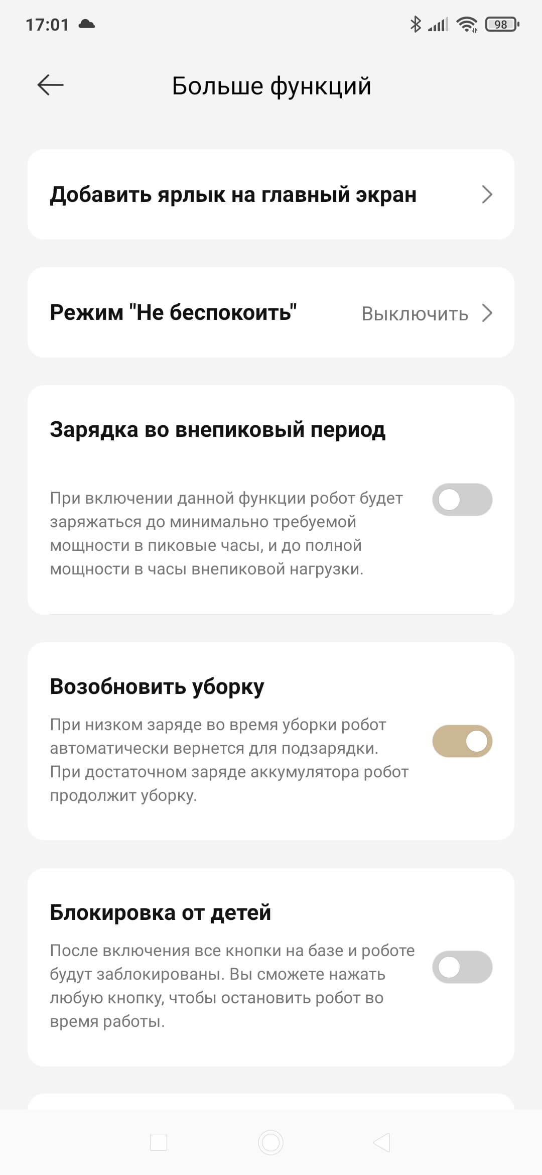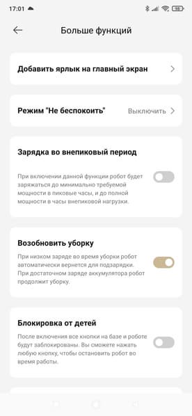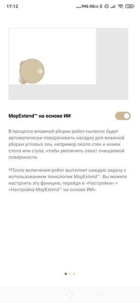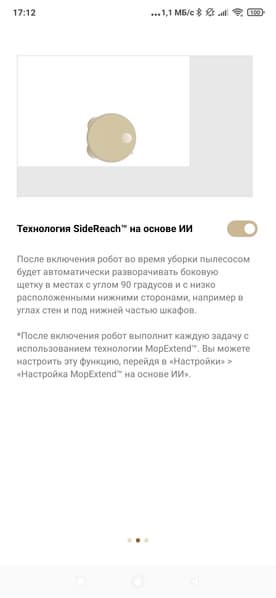 При этом функциональность приложения (в сравнении с тем, что мы видели у младших моделей) изменилась не сильно. Главное — тут добавились лишь настройки для выдвигающейся швабры и боковой щетки.