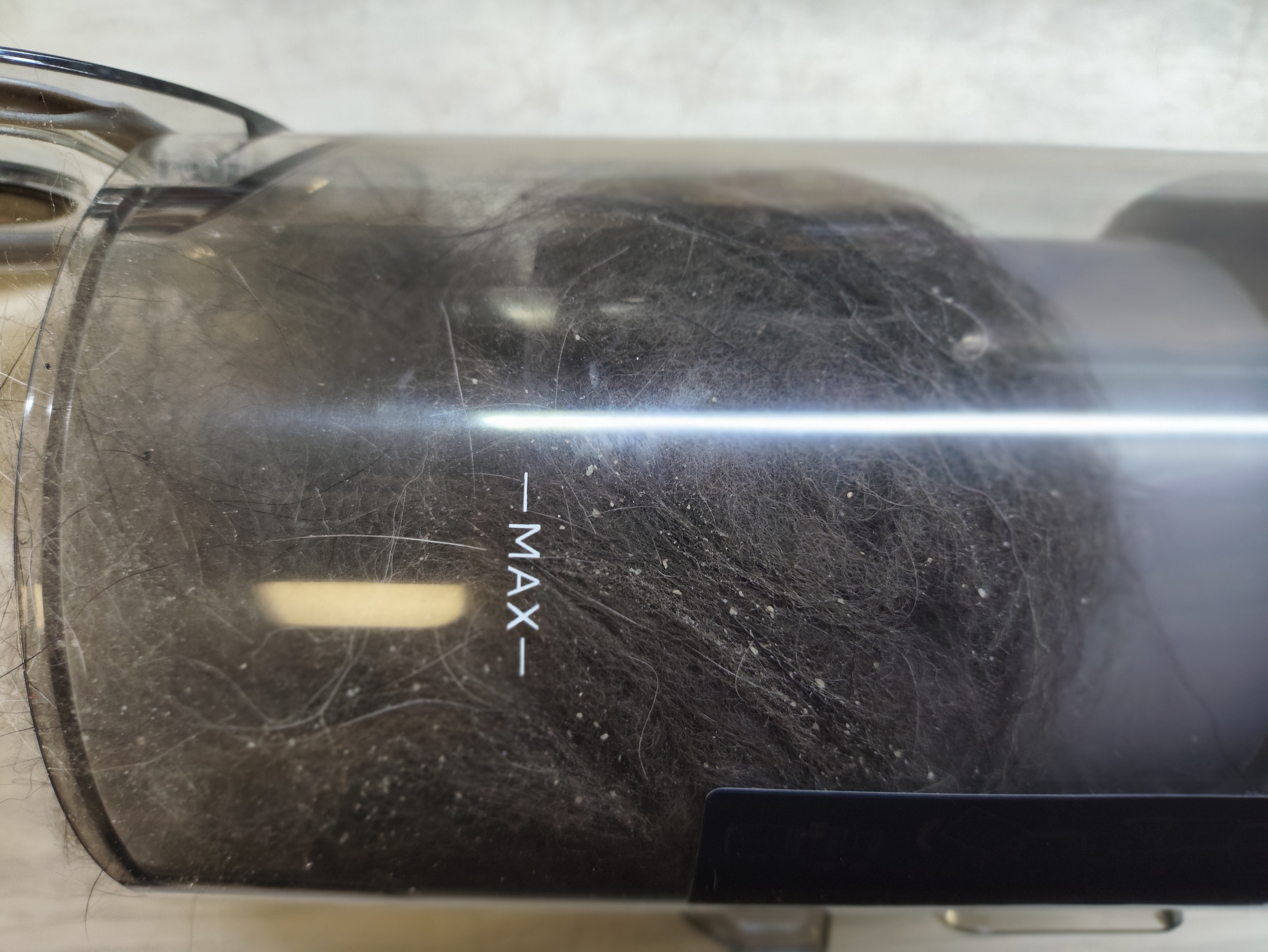 Если же сразу включить режим максимальной мощности, то 90% площади окажется чистой с первого прохода. Правда, в этом режиме нужно будет действовать оперативно, не отвлекаясь на посторонние дела: аккумулятор разряжается довольно быстро (как и у всех подобных устройств). В режиме усиленного всасывания нам удалось комфортно (без спешки, но и без повторных проходов) пропылесосить небольшую трехкомнатную квартиру (75 квадратных метров) со стандартным набором мебели. Уровень заряда при этом понизился со 100% до 20%-25%, а когда он упадет ниже 10%, пылесос уже может выключиться. Так что запаса энергии в аккумуляторе после такой уборки осталось не так уж много.
