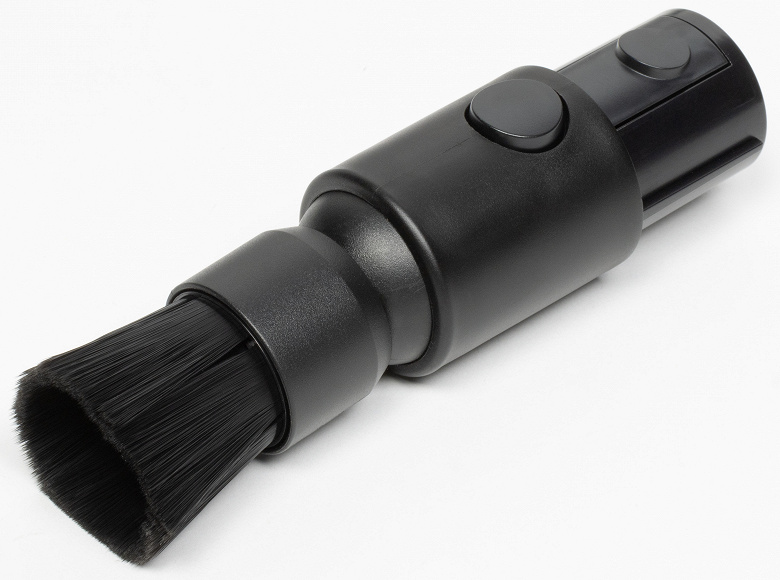 Правда, эта щетка миниатюрная, и благодаря шарнирному креплению может быть повернута под произвольным углом в любую сторону.