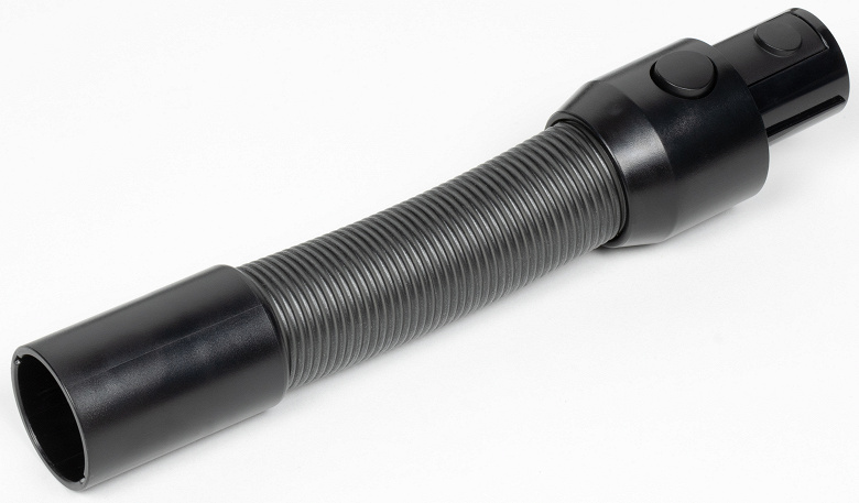 Мы обнаружили в комплекте гофрированный шланг-удлинитель, способный изменять свою длину в пределах от 26 до 72 см.