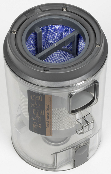 Наконец, заканчивая разговор о моторном блоке, упомянем о наличии цилиндрического HEPA-фильтра. Он устанавливается внутрь корпуса и фиксируется на своем месте с легким усилием.