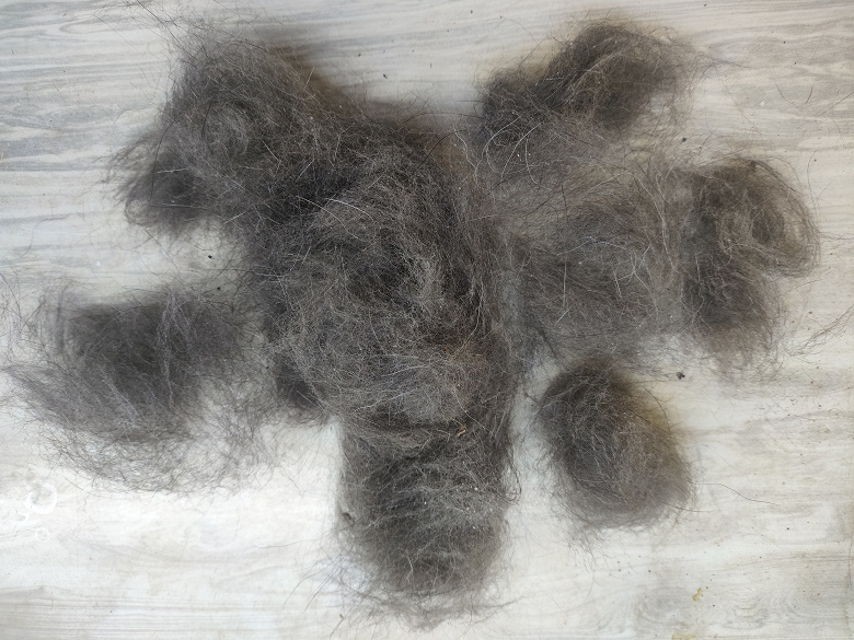 Несмотря на то что животное было тщательно вычесано менее чем за неделю до проведения нашего эксперимента, шерсти по итогу было собрано немало.
