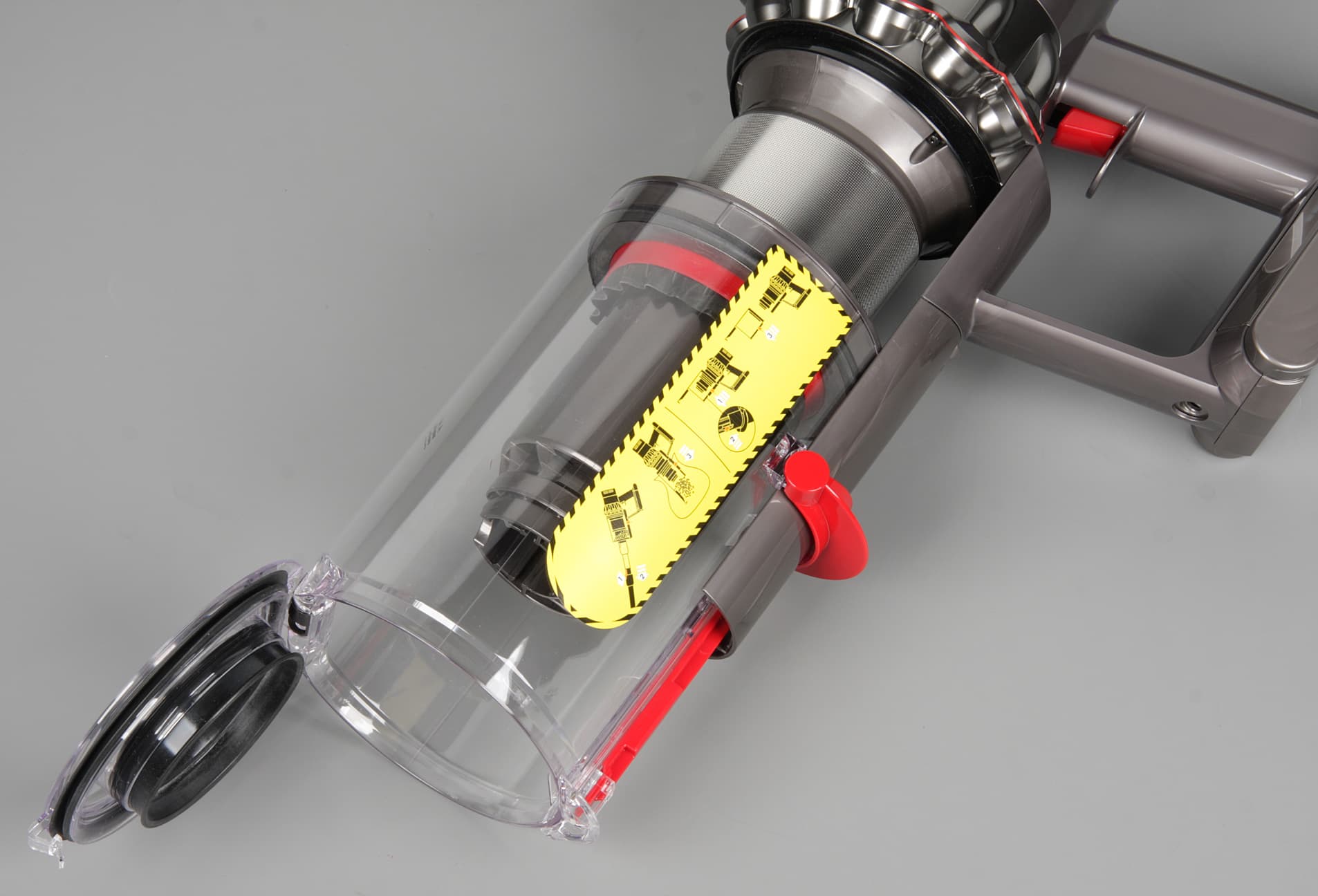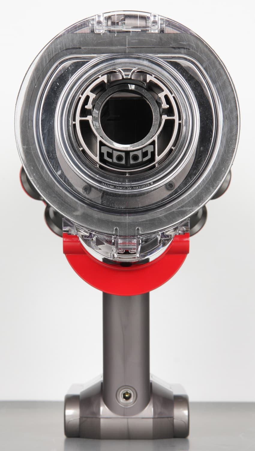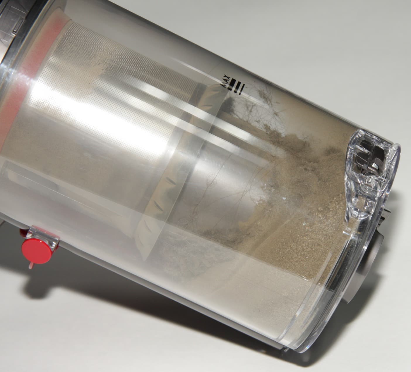 Опустошая пылесборник у V8 и похожих на него моделей, пылесос приходилось держать над мусорным пакетом, поэтому немного пыли могло разлететься в стороны мимо пакета. В случае V10 такая неприятность произойдет с меньшей вероятностью, очистка его контейнера более гигиеничная.