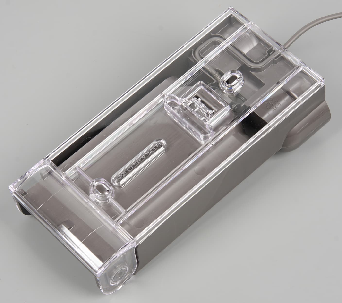Основные детали корпуса и большинства принадлежностей изготовлены из пластика разного вида. Непрозрачные элементы конструкции — из ABS (или ABS + поликарбонат) или полипропилена, прозрачные — из поликарбоната (стакан пылесборника и кожухи щеток, например). Внешняя поверхность деталей из ABS зеркально гладкая, из полипропилена — матовая. Мелкие повреждения и царапины на них незаметны, так как пластик не слишком светлый и не слишком темный. Блок мелких циклонов снаружи имеет темно-серое серебристое устойчивое к появлению царапин покрытие.