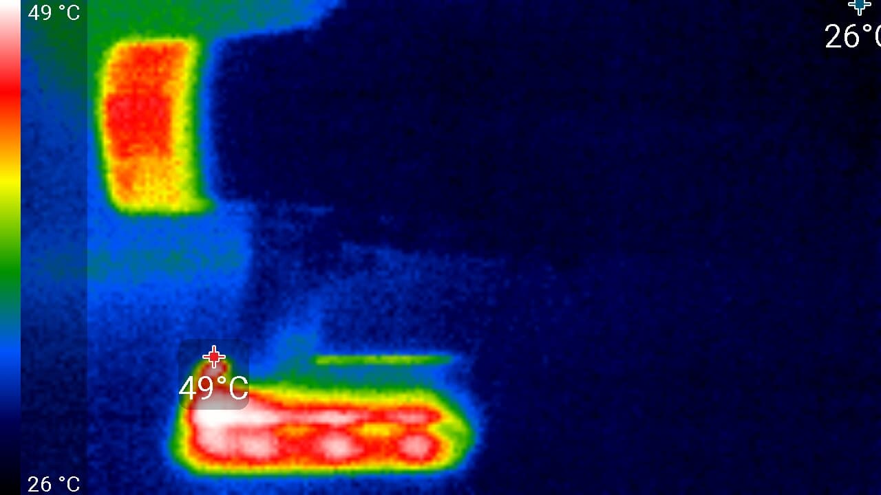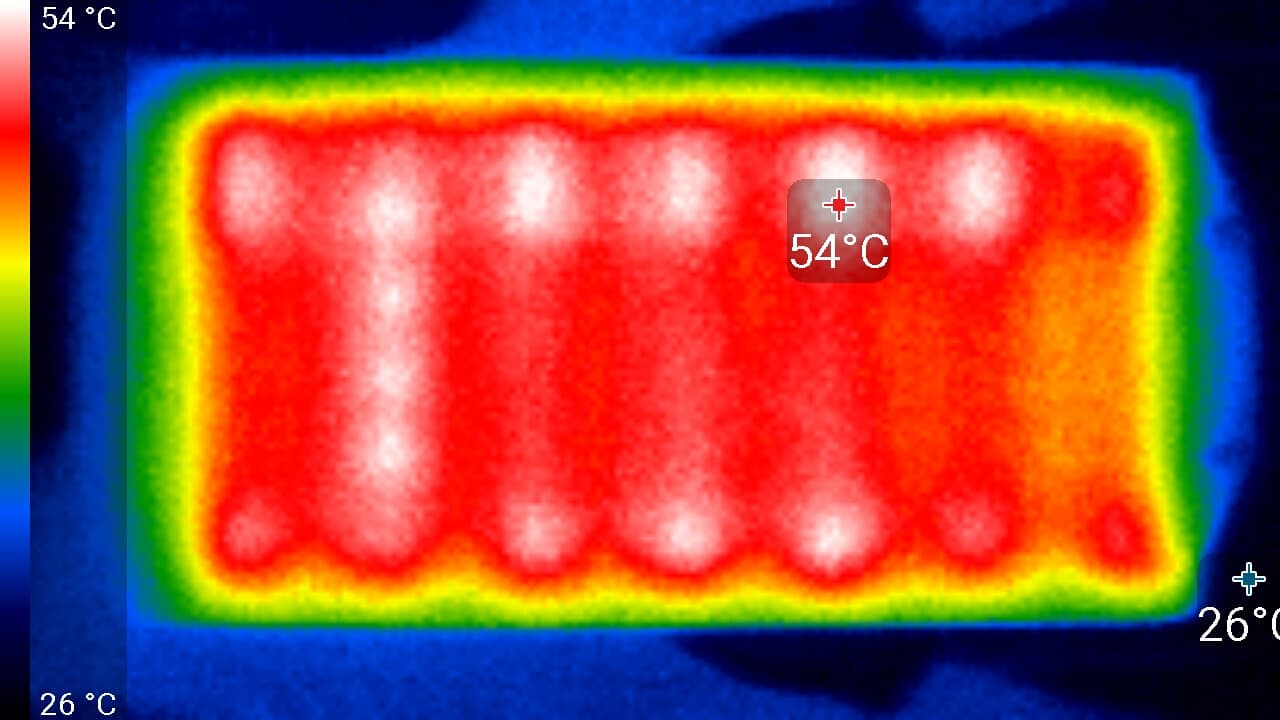 Больше всего греется аккумуляторный отсек (местами до 54 °C):